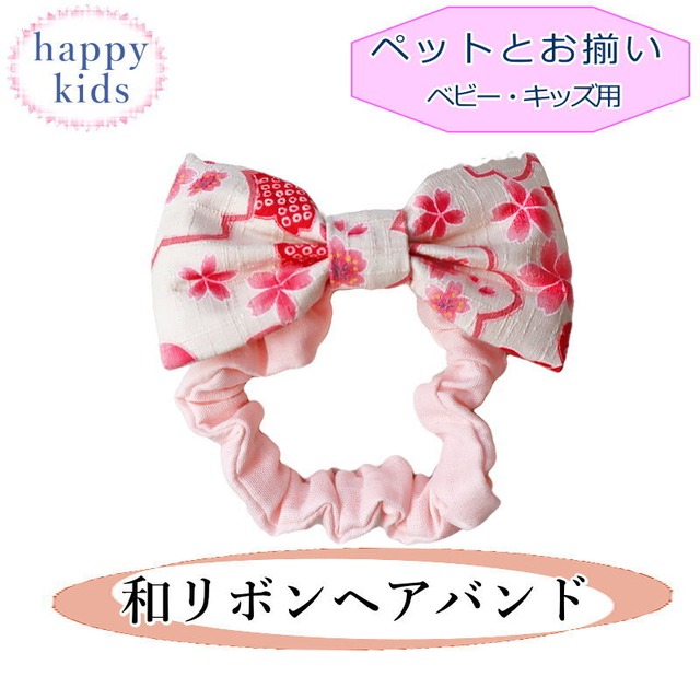 和柄ヘッドバンド リボン 桜 薄紅 雛祭り ヘアアクセ お正月 年賀状 ベビー 赤ちゃん キッズ 子供 犬 猫 ペット お揃い