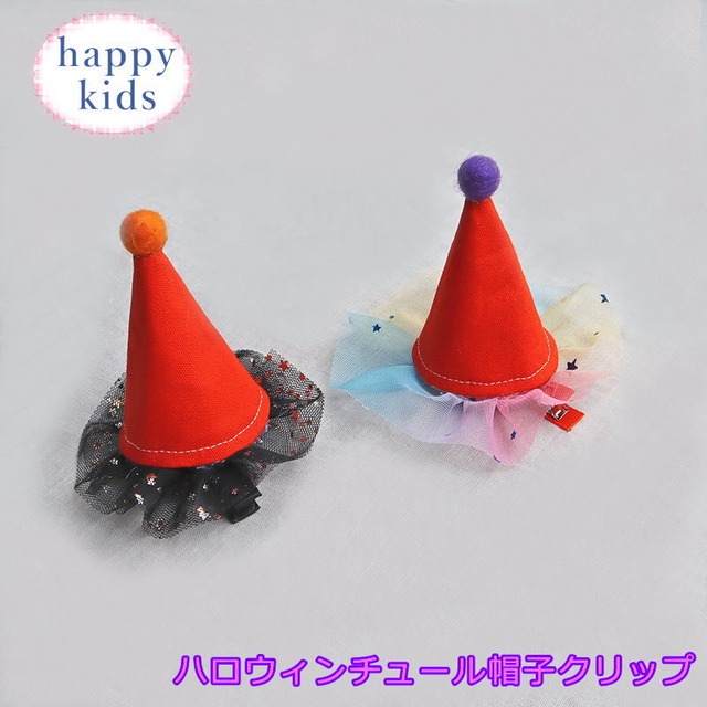 ベビーキッズ用 チュールヘアクリップ ピンク とんがり帽子 誕生日 バースデー ヘアピン ヘアアクセサリー クラウン 犬 ペット
