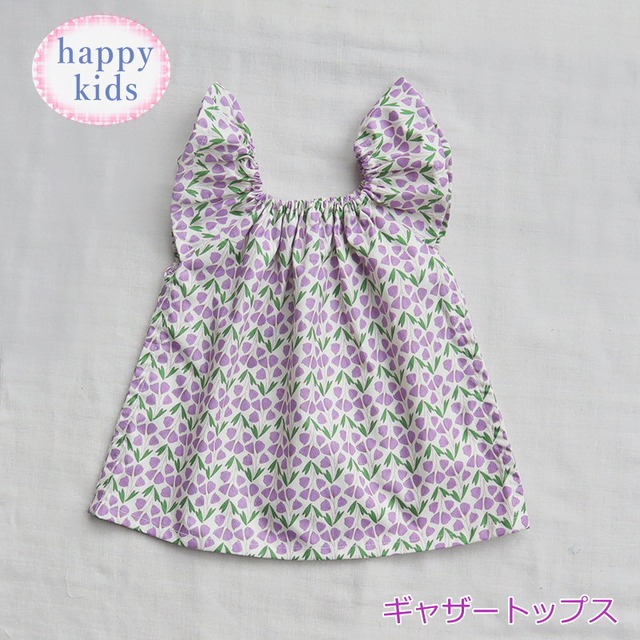 ギャザートップス 80~90サイズ ラベンダー色 花柄 ベビー 赤ちゃん キッズ 子供 幼児 女の子 ブラウス トップス