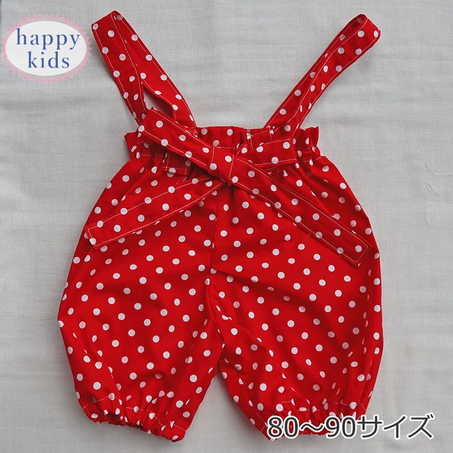 ショルダーかぼちゃパンツ レッド 水玉 ドット 80~90サイズ ベビー 赤ちゃん キッズ 子供 幼児 園児 男の子 女の子