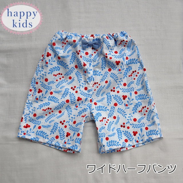 白地にブルーのリーフと赤い実の爽やかなプリント 夏にぴったりなハーフパンツ 首回りはゴム入りのギャザースタイル ゴム通し穴を閉じておりませんので調節可能です 【サイズ】平置き実寸値 80~90サイズ相当 丈:約31㎝ ウエスト:約20㎝ ※ゴムが伸びていない状態で ※複数店舗で販売しておりますため売り切れになる場合がございます。 ※注文確認・メッセージへの返信・制作作業は平日10時~15時とさせていただいております。 土日祝日はお休みをいただいておりますので予めご了承くださいませ。 ☆ご注文の前に必ずお読みください☆ 心を込めて丁寧に製作することを心がけていますが、工場縫製の既製品とは違います為、多少の縫い目のひずみやサイズの誤差は生じます。勝手ながら、ご理解の上お買い上げいただきますようお願いいたします。 ☆キーワード キッズ 子供 子ども 幼児 ベビー キッズ 赤ちゃん 女の子 花柄 白 青 ブルー ホワイト 赤 レッド