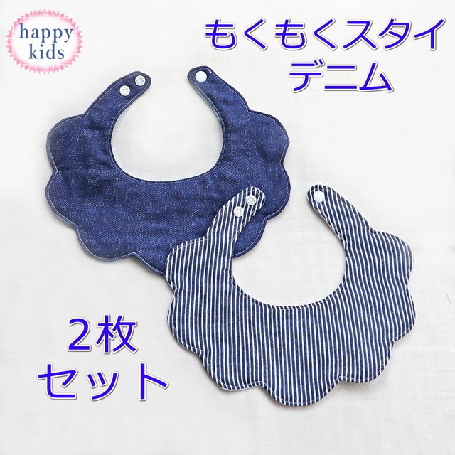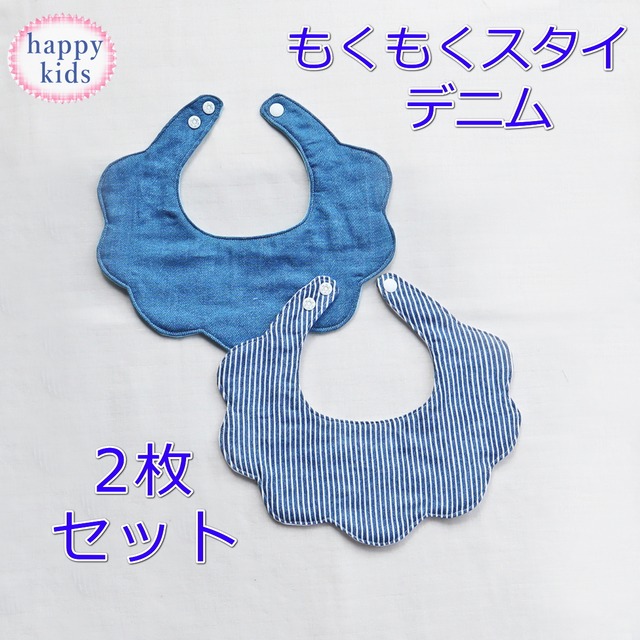 デニムもくもくスタイ 2枚セット インディゴ 出産祝い よだれかけ ヒッコリー 無地 ベビー 赤ちゃん キッズ ギフト