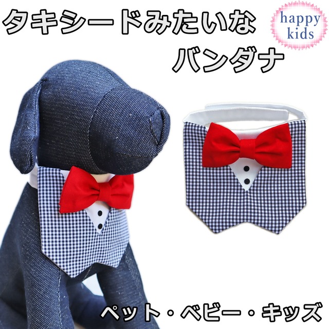 タキシードみたいなバンダナ 蝶ネクタイ付き チェック 犬 猫 ペット ベビー 赤ちゃん キッズ 子ども 子供 誕生日 結婚式 100日祝い 節句 前撮り リングドッグ 正装 フォーマル