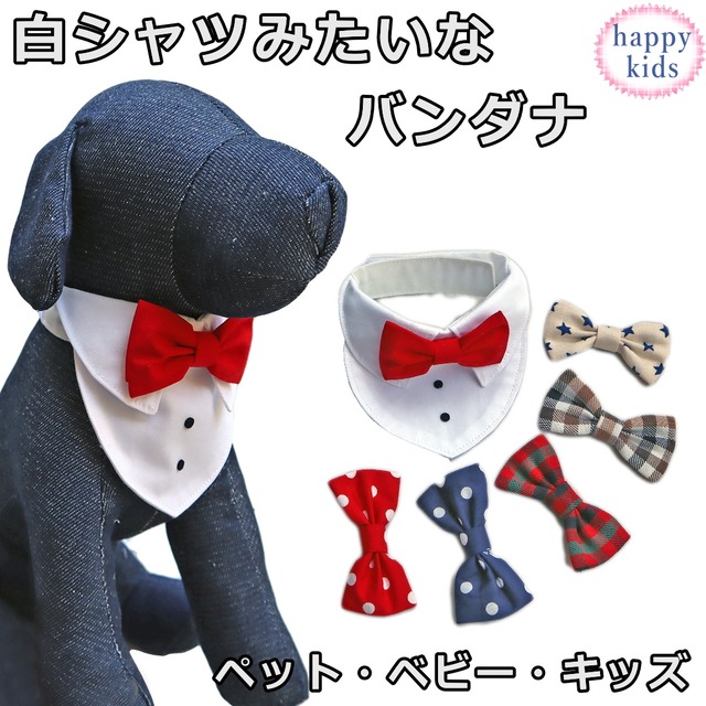 白シャツみたいなバンダナ 蝶ネクタイ付き 犬 猫 ペット ベビー 赤ちゃん キッズ 子ども 子供 誕生日 結婚式 100日祝い 節句 前撮り リングドッグ 正装 フォーマル