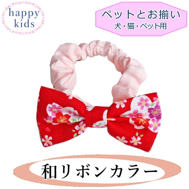 ペットとお揃い 犬用 猫用 和柄リボンカラー 桜 レッド 雛祭り 首輪 チョーカー 正月 年賀状 ベビー 赤ちゃん キッズ