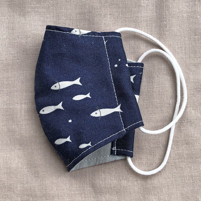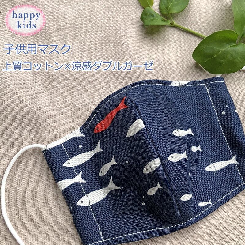 キッズ 子供 幼児 布マスク 洗える 魚 青 ネイビー 立体 涼感 冷感 夏 ひんやり 涼しい ベビー キッズ 赤ちゃん 幼稚園児 保育園児 幼児