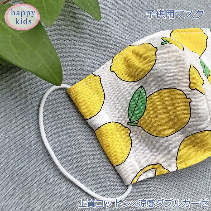 夏 涼感マスク キッズ用 ベビー用 レモン 冷感 ガーゼ 子供 布マスク 小学校低学年