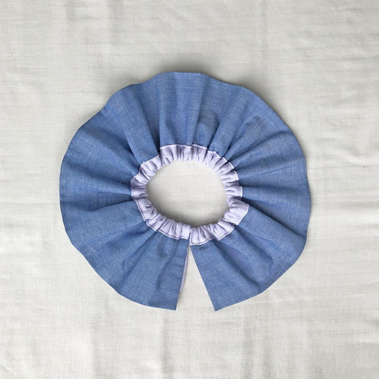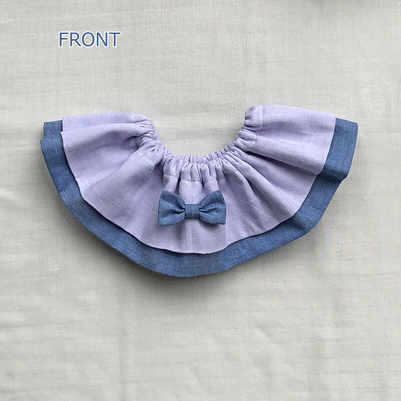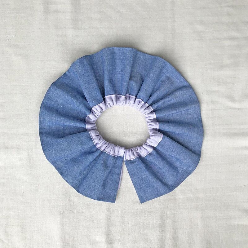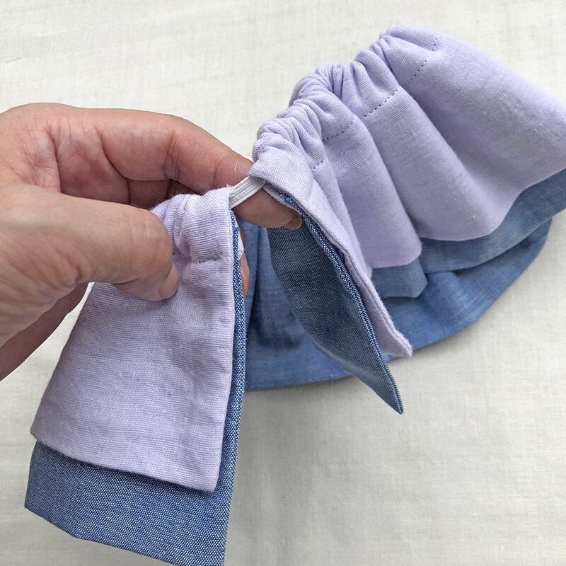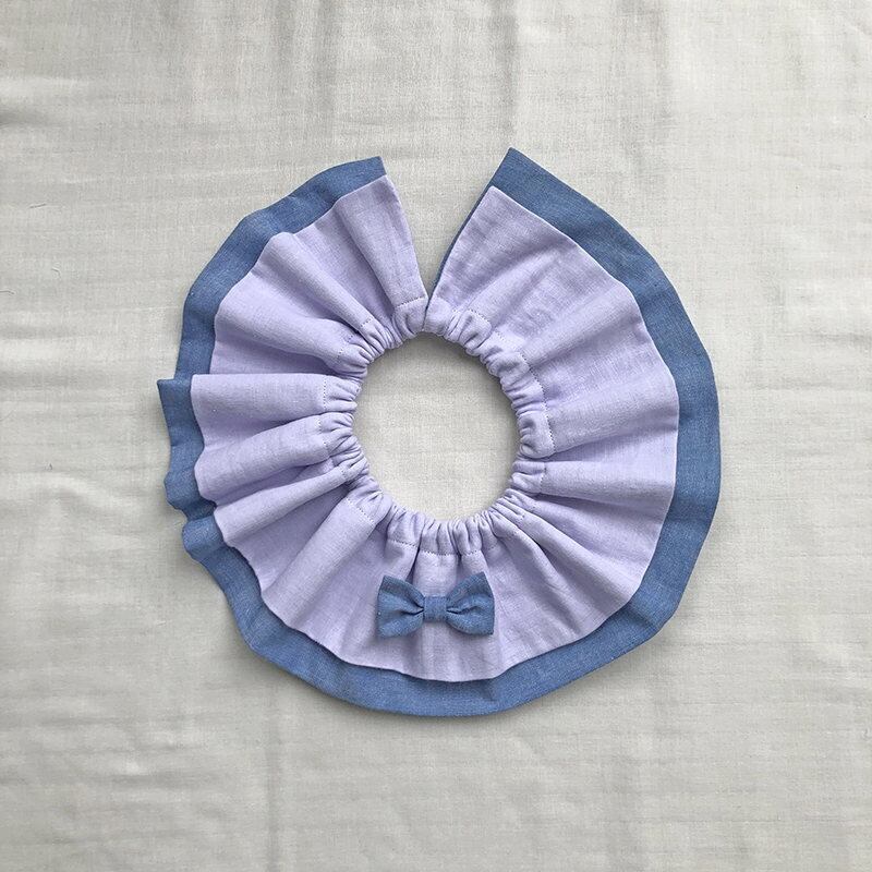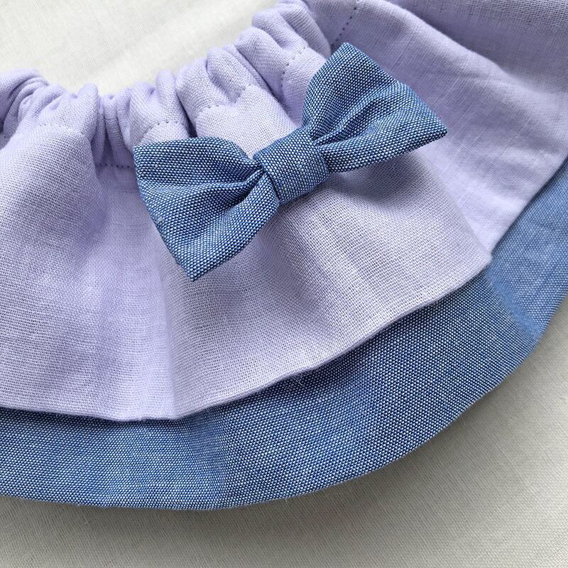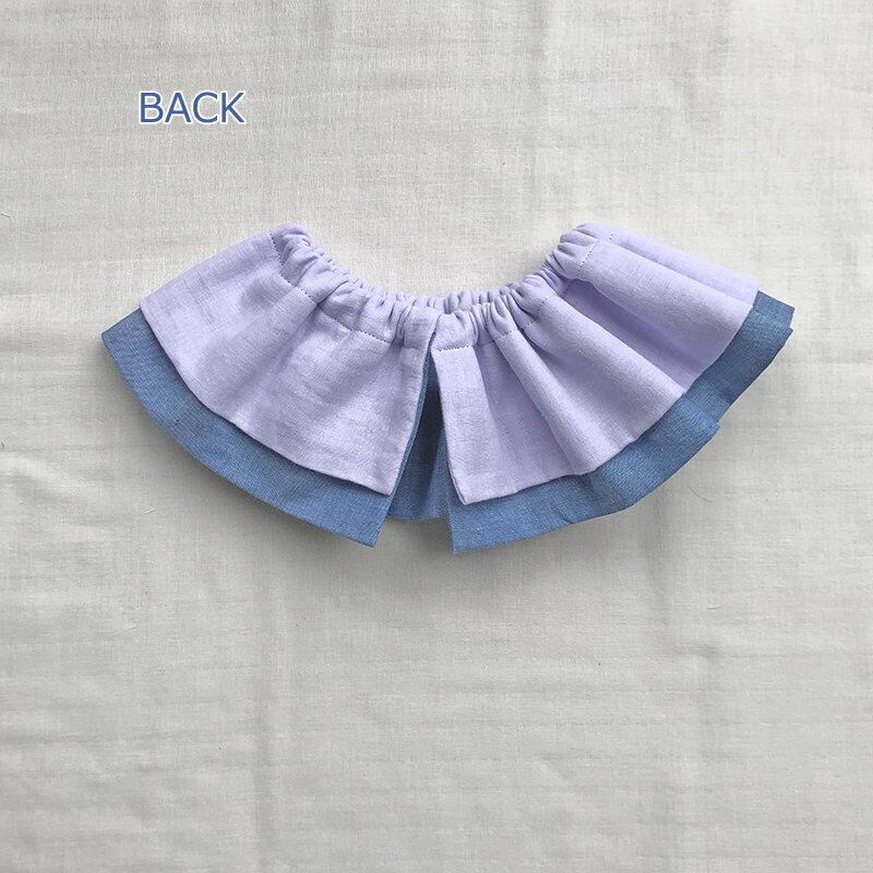 シンプルなダンガリーに綺麗なラベンダー色のダブルガーゼを重ね、フルルに仕立てました。