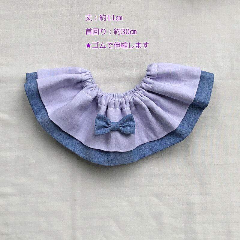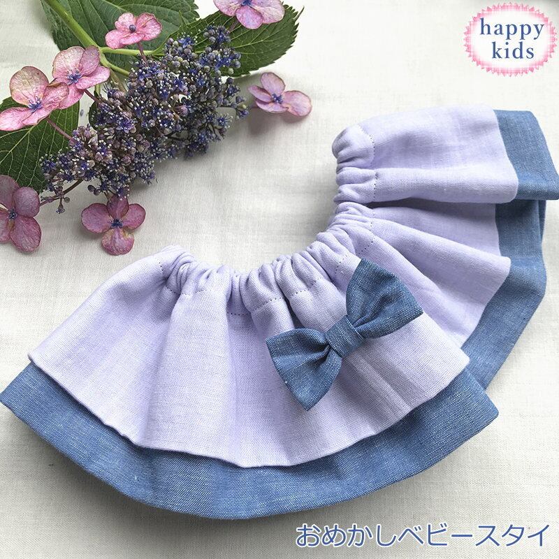 フリルスタイ よだれかけ ラベンダー×ダンガリー リボン付き ベビー 赤ちゃん キッズ 子供 幼児 男の子 女の子