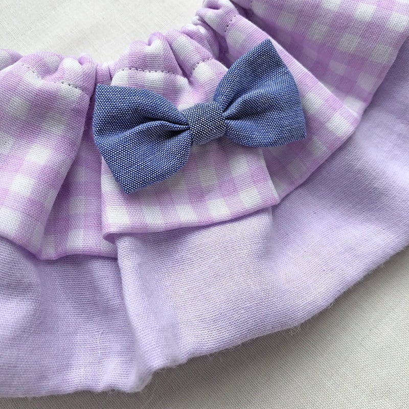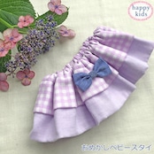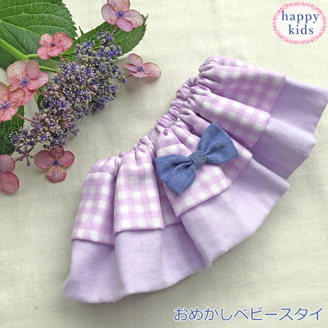 フリルスタイ よだれかけ ラベンダーチェック リボン付き ベビー 赤ちゃん キッズ 子供 幼児 男の子 女の子