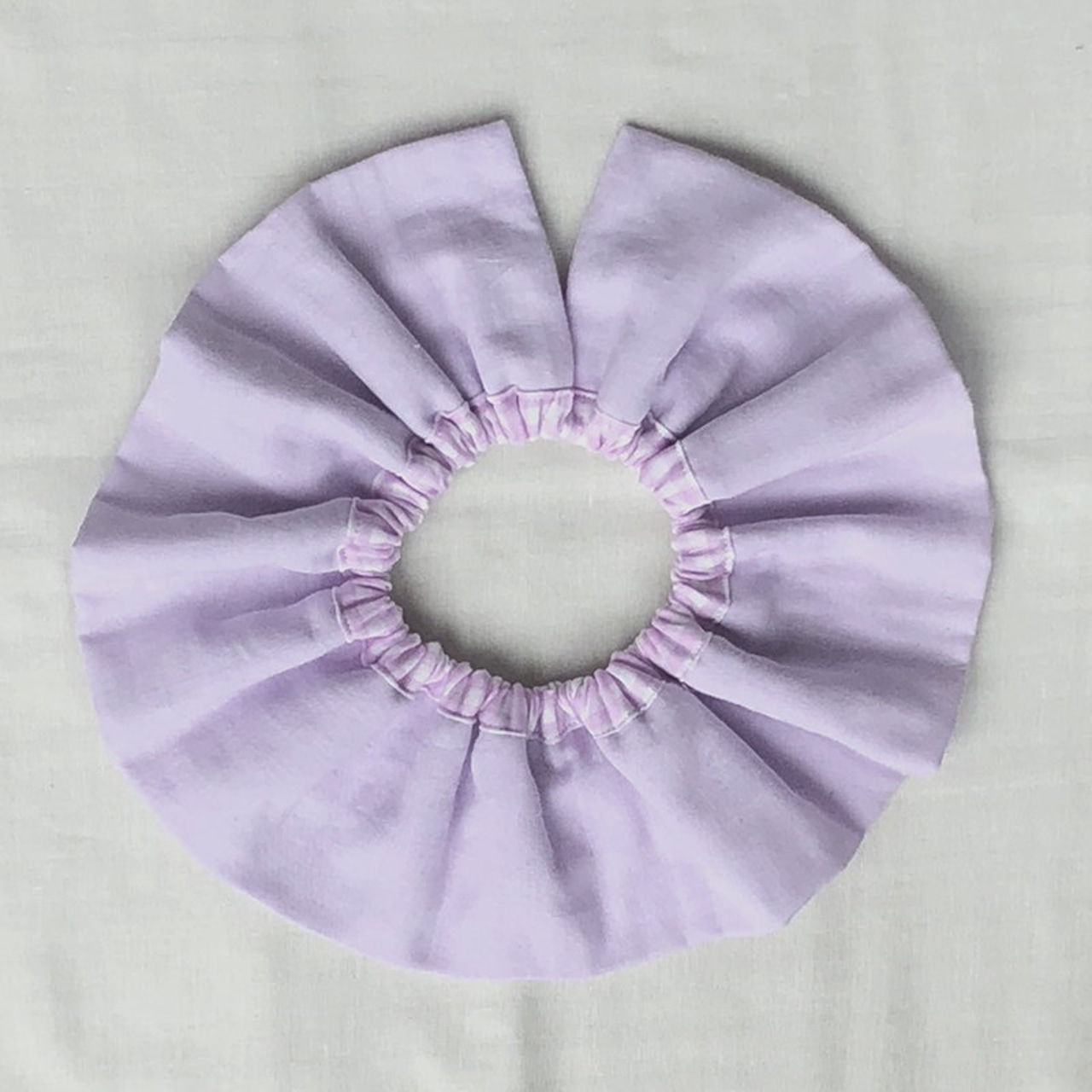 綺麗なラベンダー色のダブルガーゼを重ね、フルルに仕立てました。