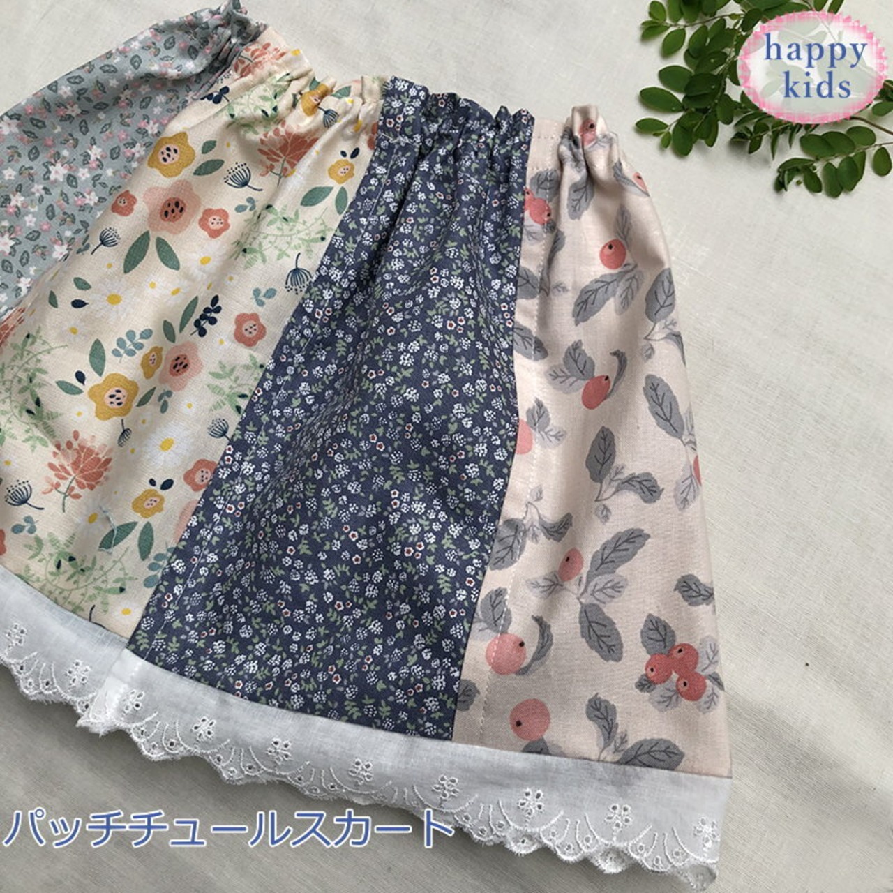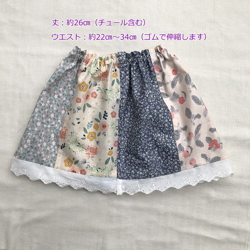 花柄パッチワークにチュールを重ねた可愛いギャザースカート。