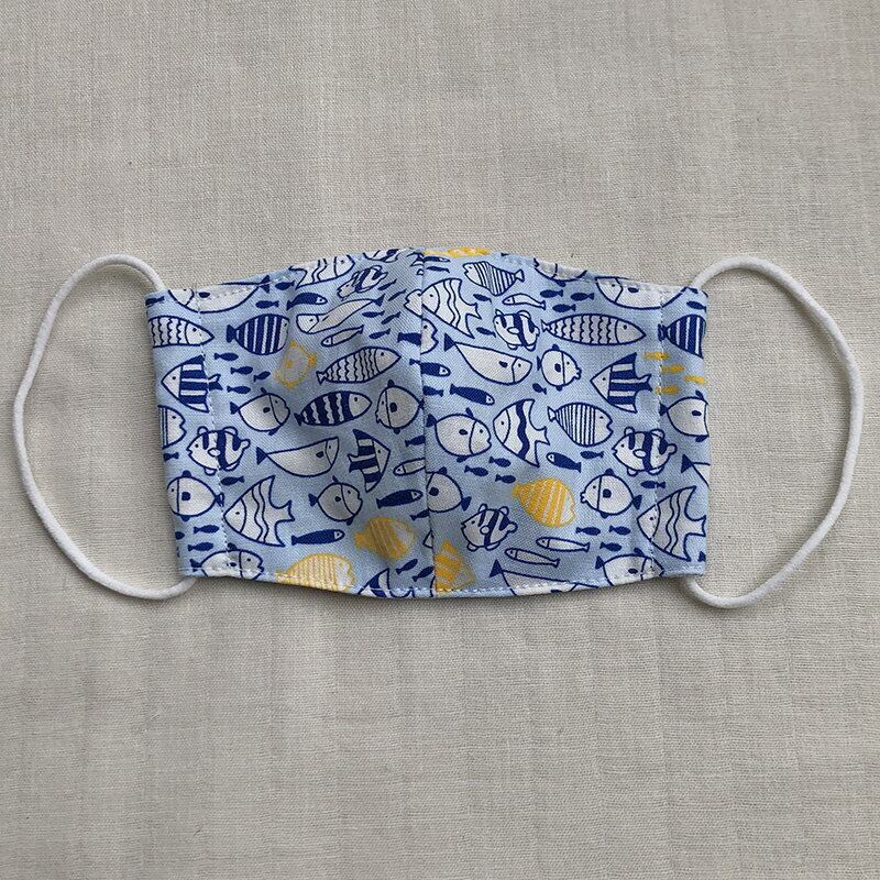 夏 涼感マスク キッズ用 ベビー用 お魚いっぱい 女の子 男の子 冷感 ガーゼ 子供 布マスク 小学校低学年