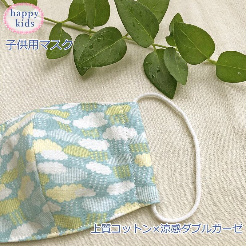 夏 涼感マスク キッズ用 ベビー用 モクモク雲 女の子 男の子 冷感 ガーゼ 子供 布マスク 小学校低学年