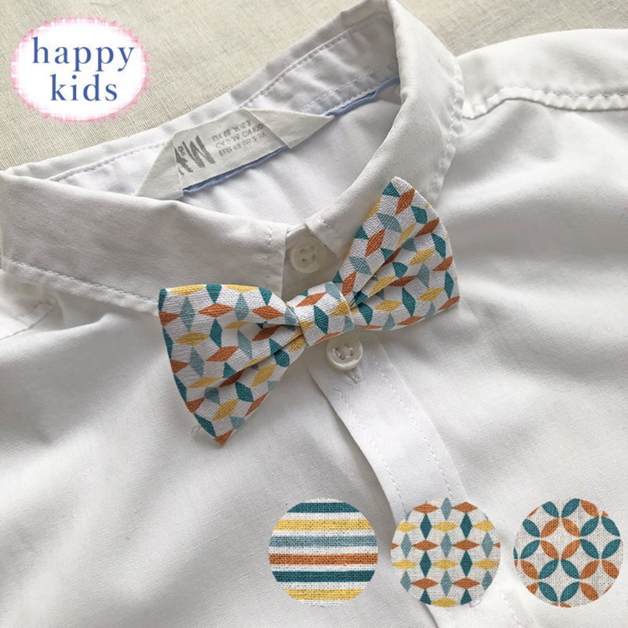 しっかりとしたコットン生地、個性的な幾何学模様の子供用蝶ネクタイ