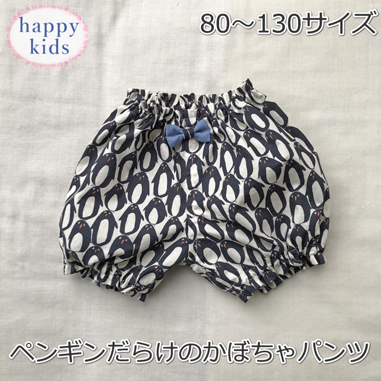 かぼちゃパンツ ペンギン 80~130サイズ ベビー 赤ちゃん キッズ 子供 幼児 園児 男の子 女の子 黒 ブラック