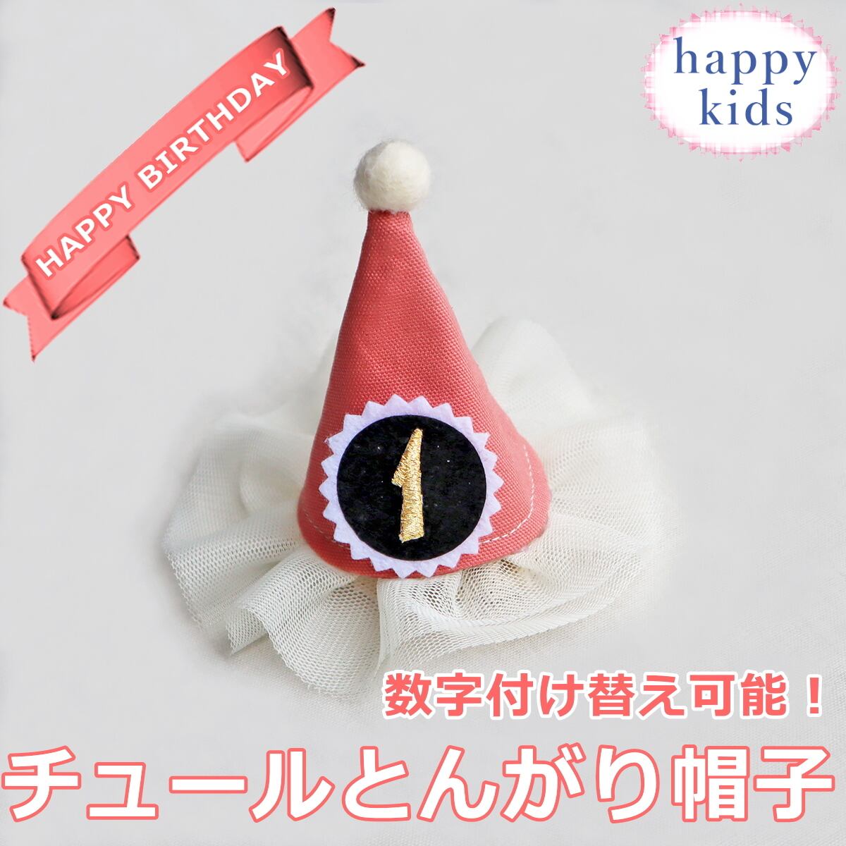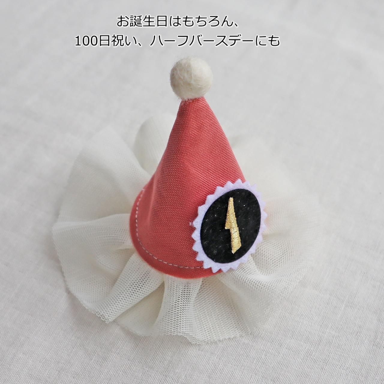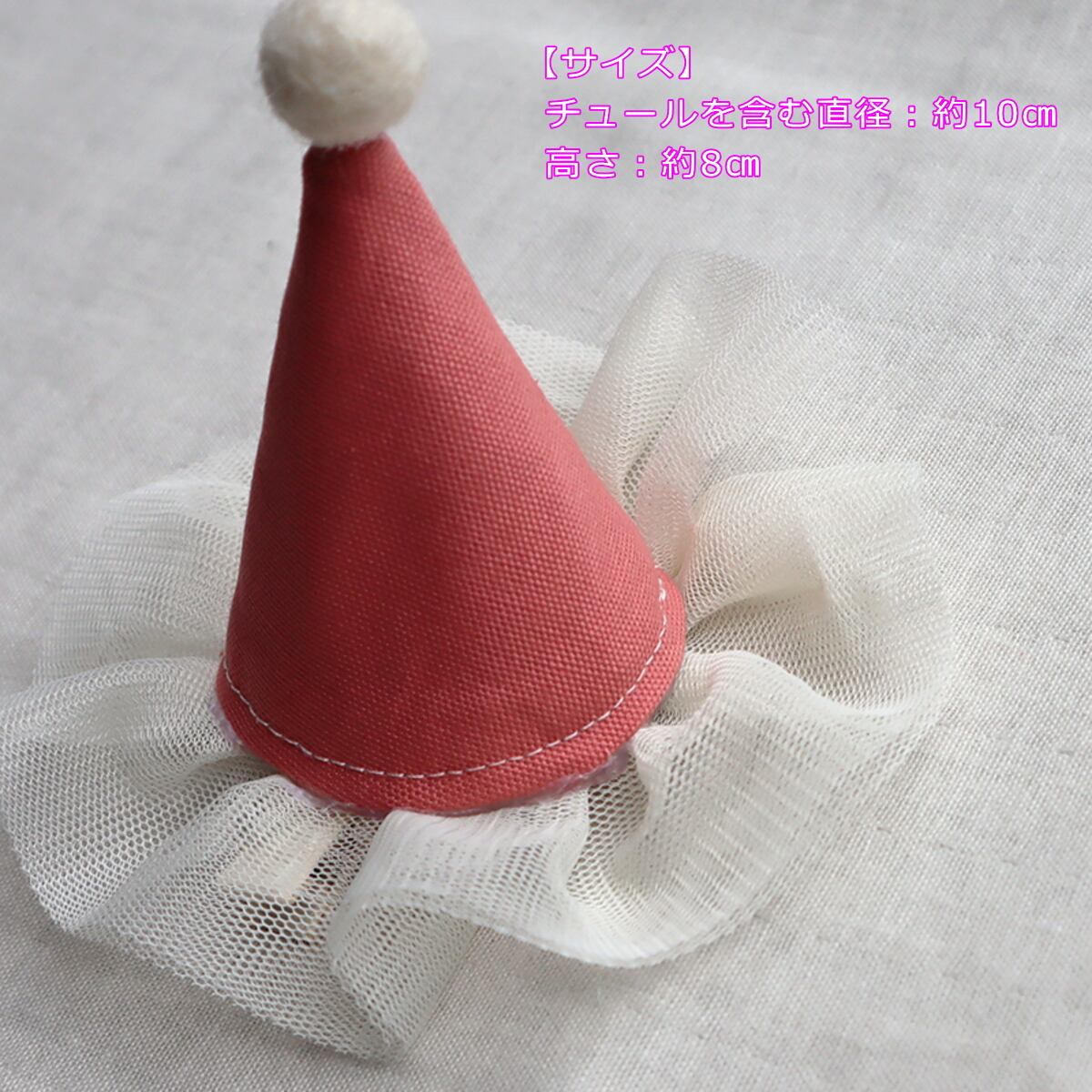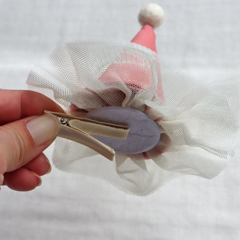 ベビーキッズ用 チュールヘアクリップ ピンク とんがり帽子 誕生日 バースデー ヘアピン ヘアアクセサリー クラウン 犬 ペット