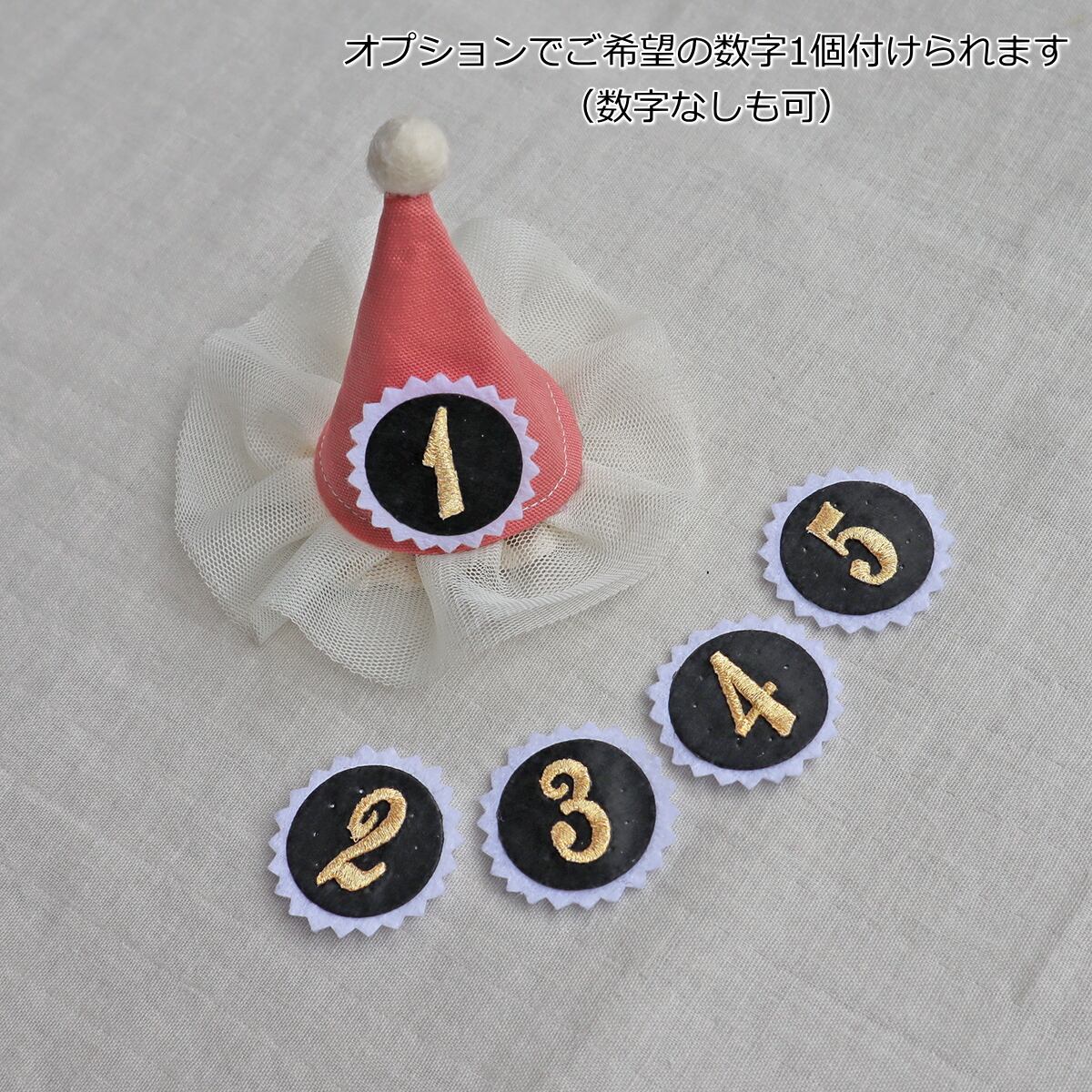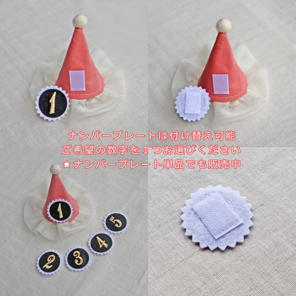 チュールのついた可愛いとんがり帽子に付け替え可能なナンバープレート1個付き