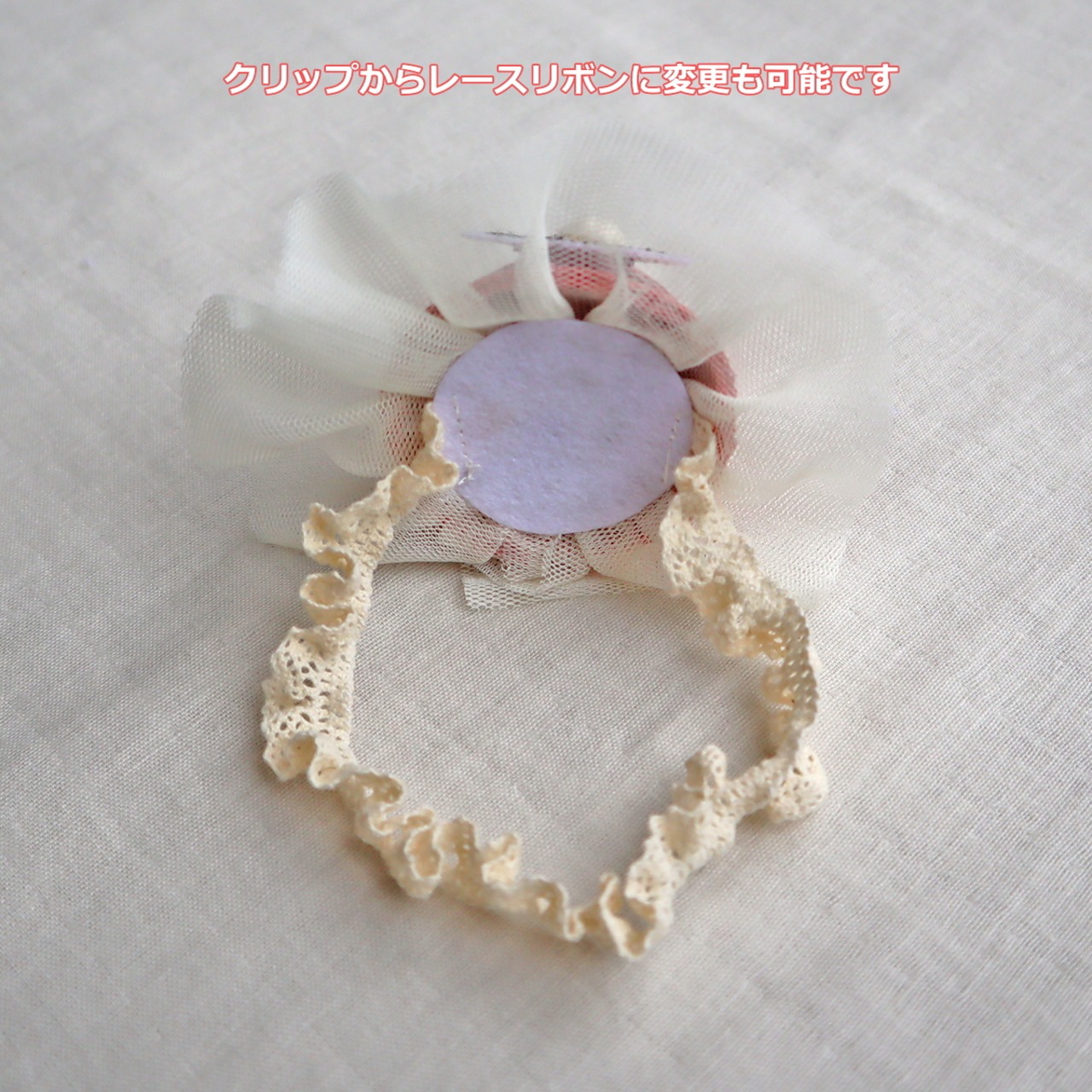 ※クリップを伸縮性のあるレースリボンに変更できます。