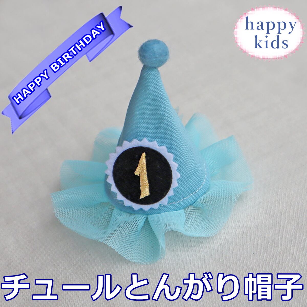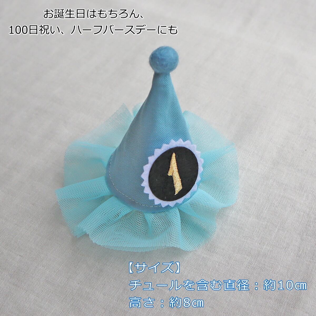 ベビーキッズ用 チュールヘアクリップ ブルー とんがり帽子 誕生日 バースデー ヘアピン ヘアアクセサリー クラウン 犬 ペット