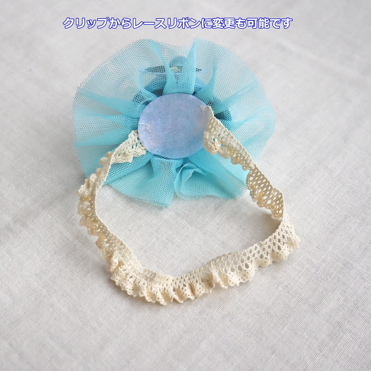 ※クリップを伸縮性のあるレースリボンに変更できます。
