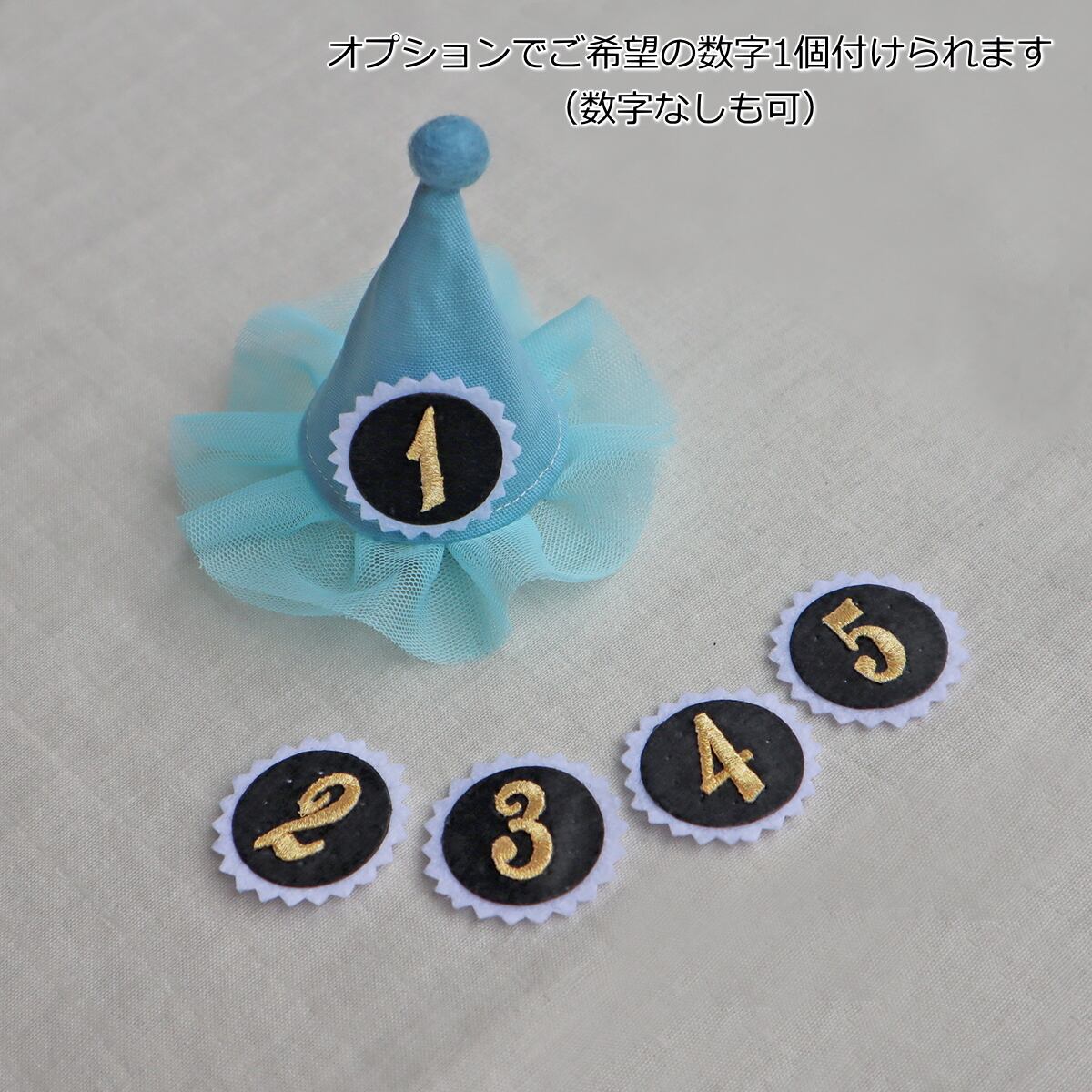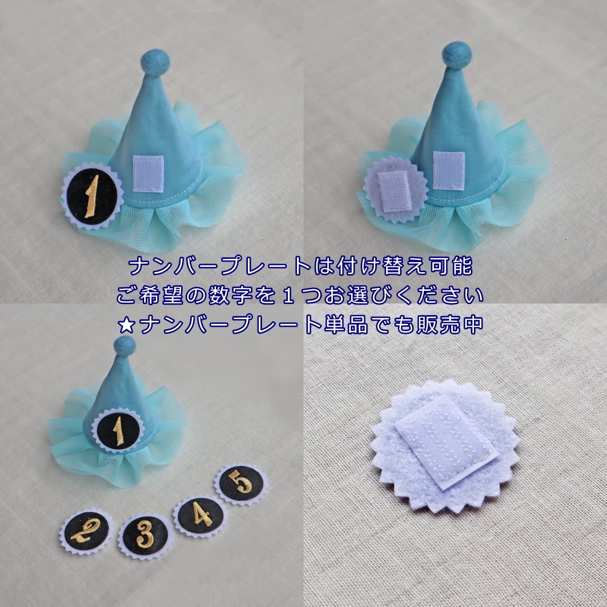 チュールのついた可愛いとんがり帽子に付け替え可能なナンバープレート1個付き