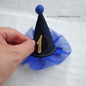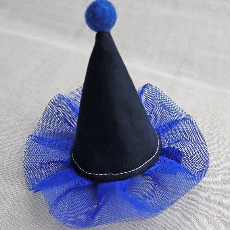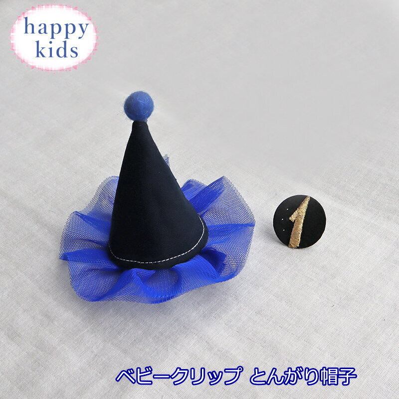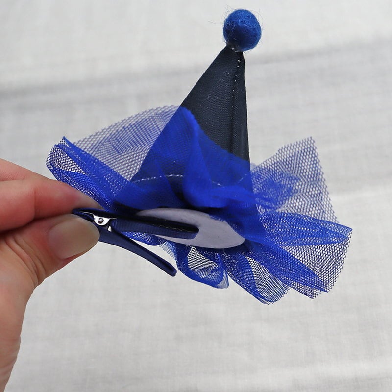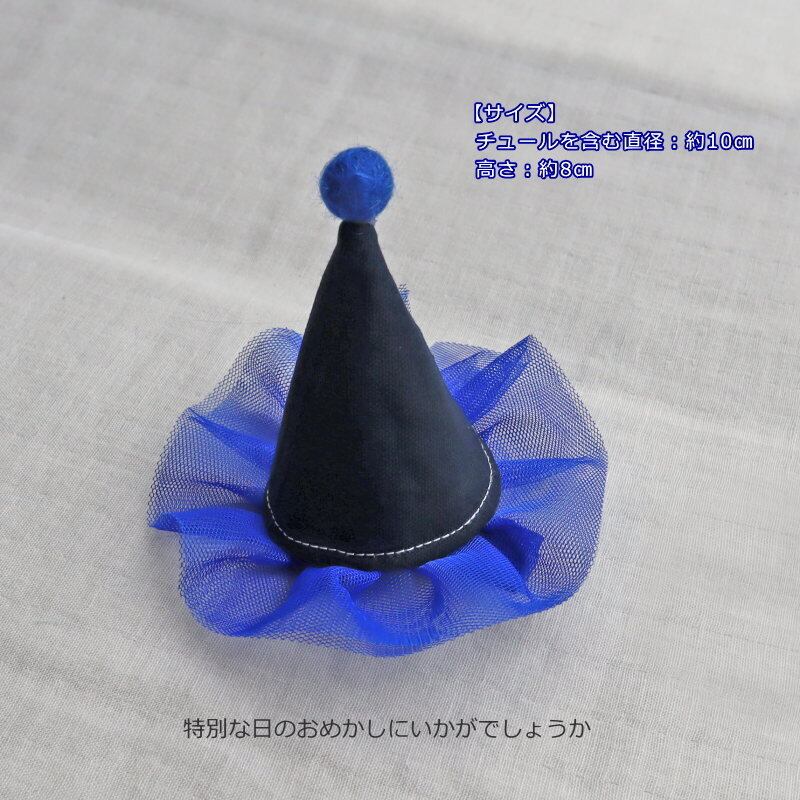 ベビーキッズ用 チュールヘアクリップ ネイビー とんがり帽子 誕生日 バースデー ヘアピン ヘアアクセサリー クラウン 犬 ペット