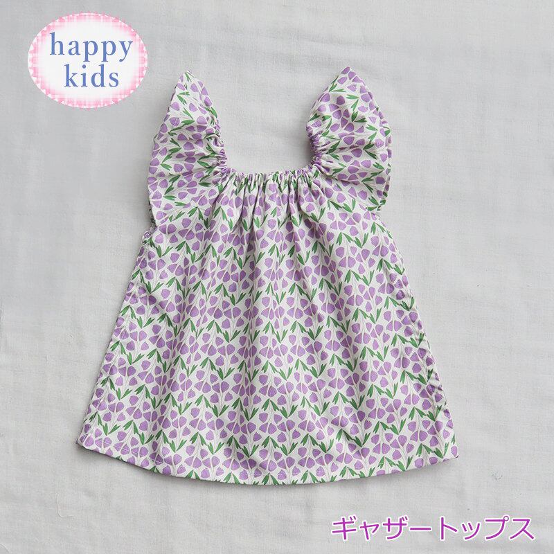 キッズ 子供 幼児 ベビー キッズ 赤ちゃん 女の子 花柄 紫 パープル ラベンダー ギャザー トップス チュニック ブラウス