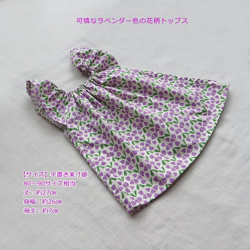 ギャザートップス 80~90サイズ ラベンダー色 花柄 ベビー 赤ちゃん キッズ 子供 幼児 女の子 ブラウス トップス