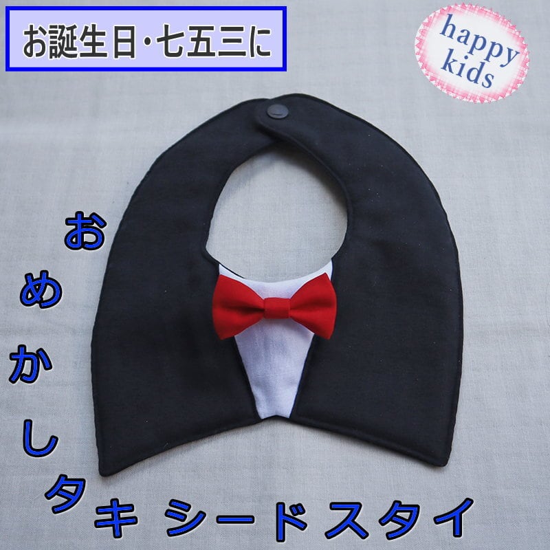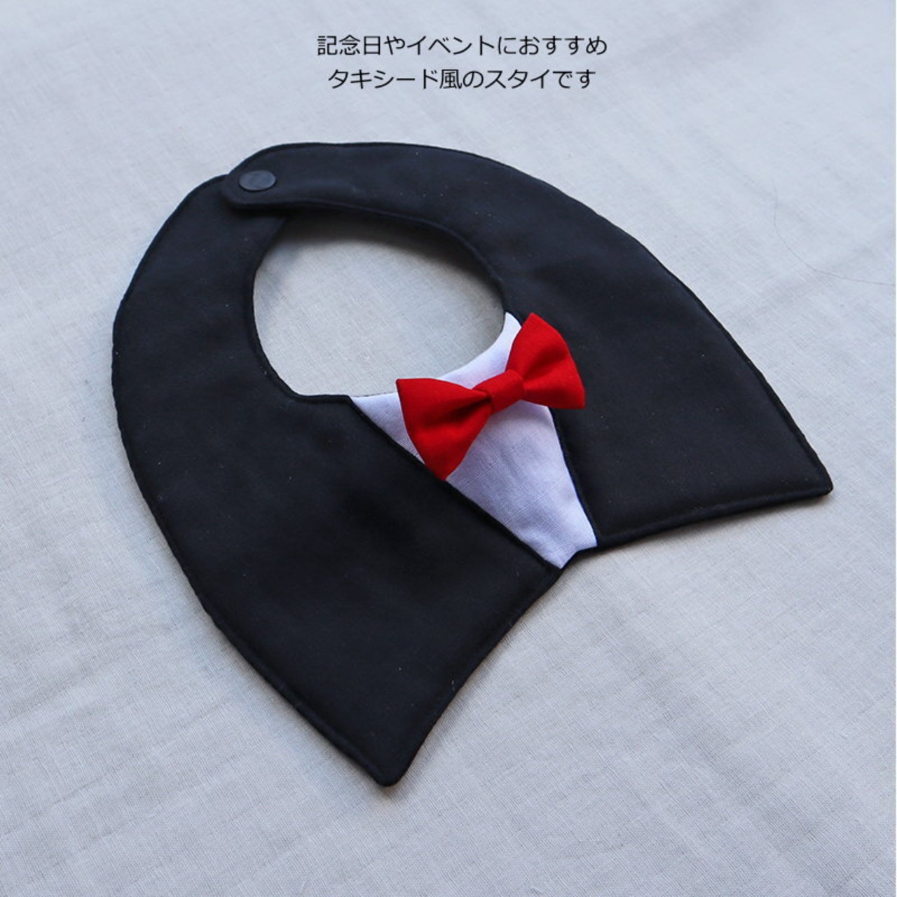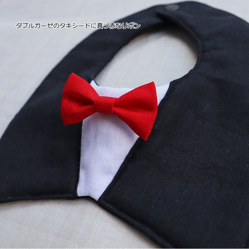 タキシード風スタイ 誕生日 結婚式 初節句 お宮参り 100日祝い ハーフバースデー よだれかけ 赤 蝶ネクタイ リボン ベビー 赤ちゃん キッズ 子供 幼児 男の子