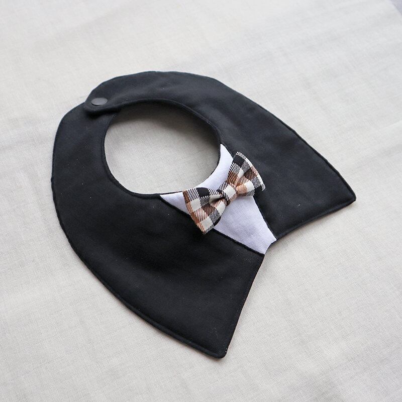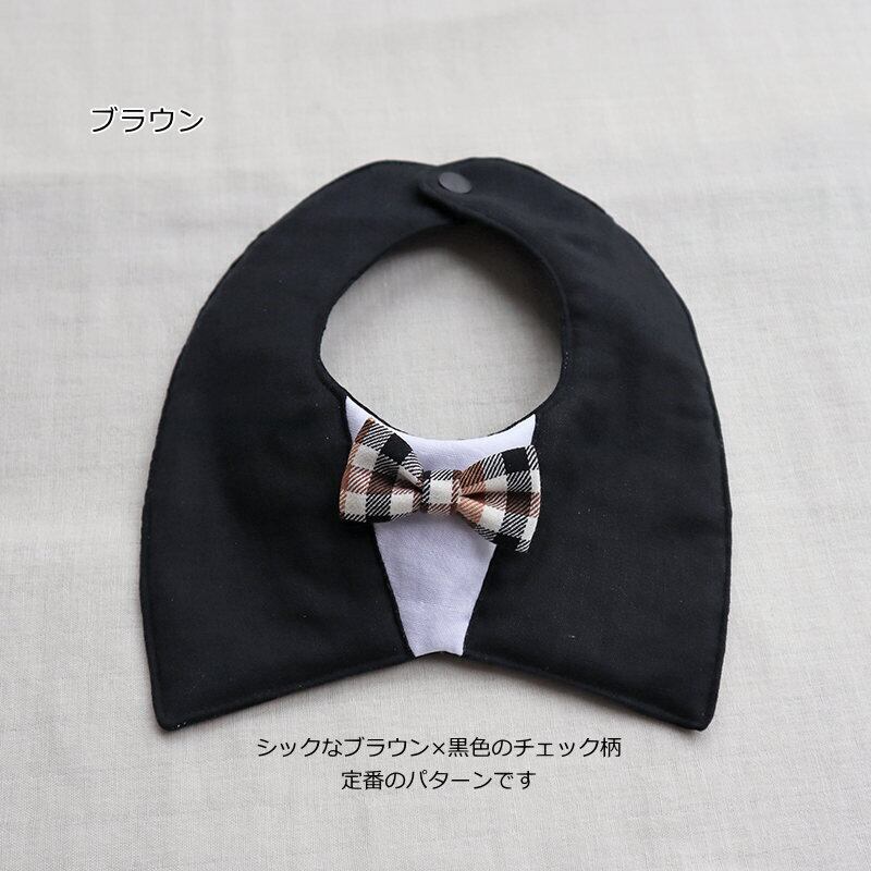 タキシード風スタイ チェック 誕生日 結婚式 お食い初め 初節句 お宮参り 100日祝い よだれかけ 蝶ネクタイ リボン ベビー 赤ちゃん キッズ 子供 幼児 男の子