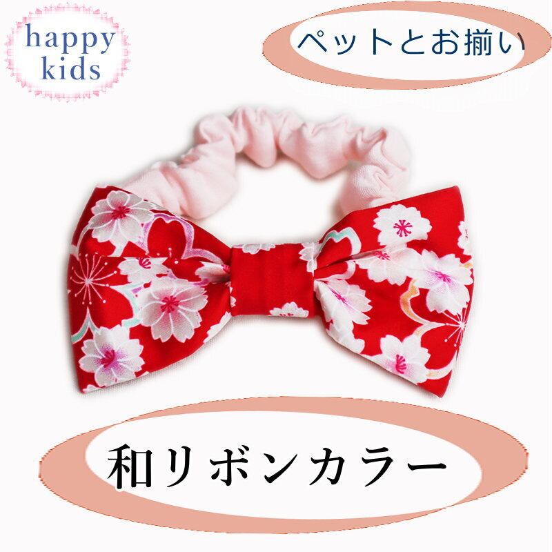 ペットとお揃い 犬用 猫用 和柄 桜深紅 雛祭り 犬 猫 ペット 首輪 チョーカー 正月 年賀状 ベビー 赤ちゃん キッズ 子供