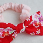 鮮やかな赤色に桜柄のリボンヘアバンド