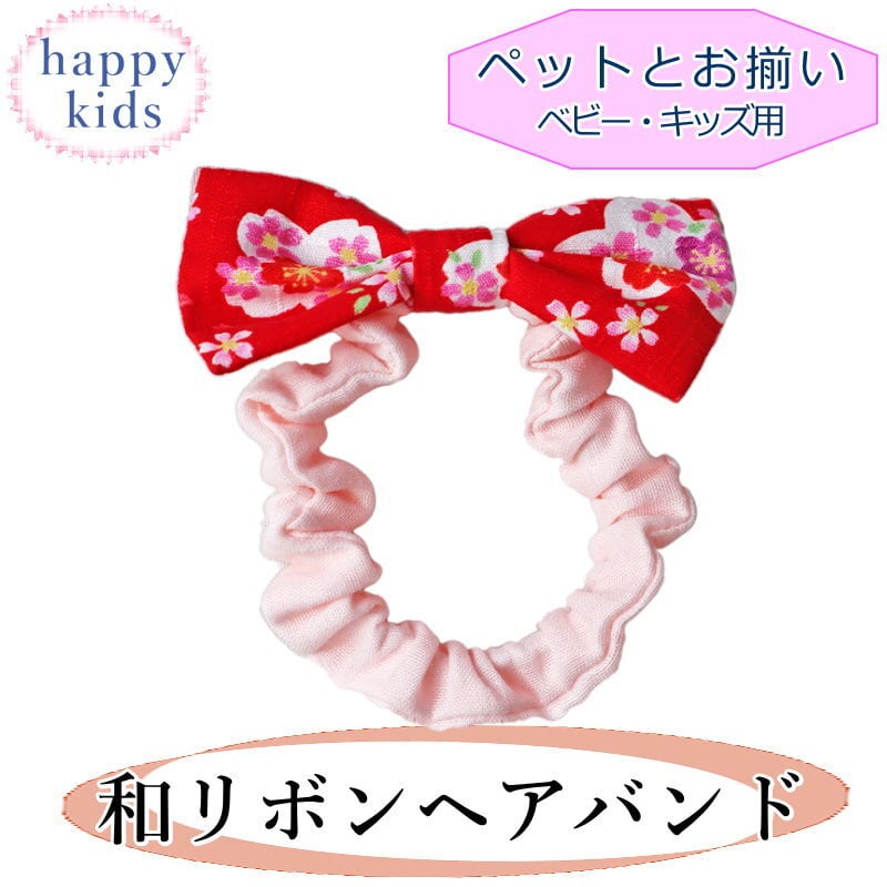 和柄ヘッドバンド リボン 桜 レッド 雛祭り ヘアアクセ お正月 年賀状 ベビー 赤ちゃん キッズ 子供 犬 猫 ペット お揃い