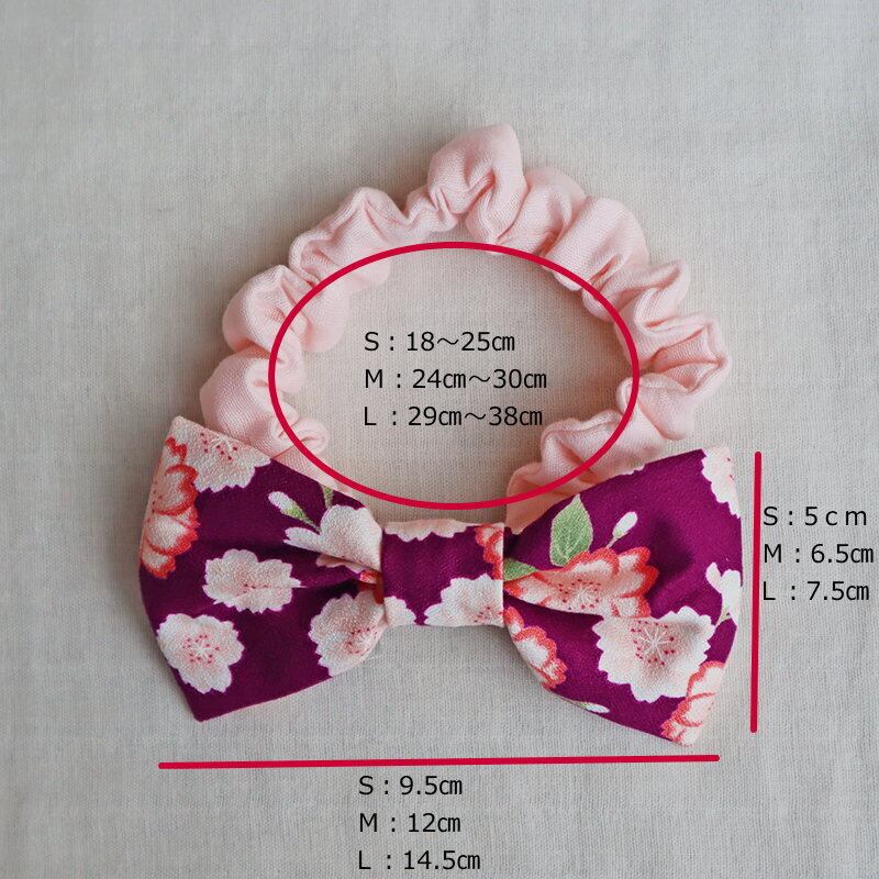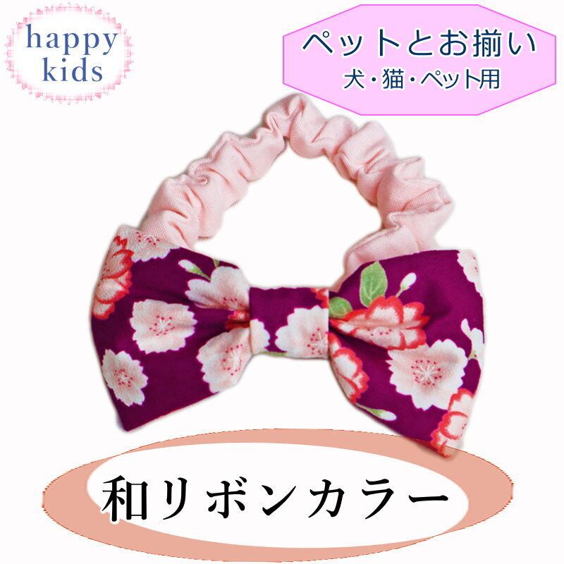 ペットとお揃い 犬用 猫用 和柄リボンカラー 八重桜 紫 雛祭り 首輪 チョーカー 正月 年賀状 ベビー 赤ちゃん キッズ