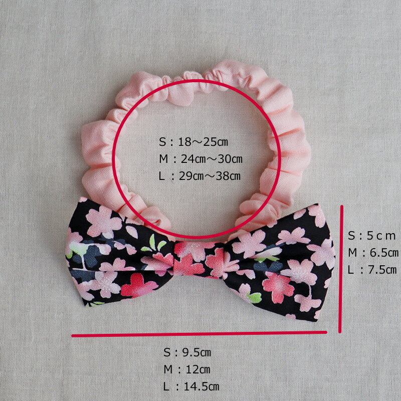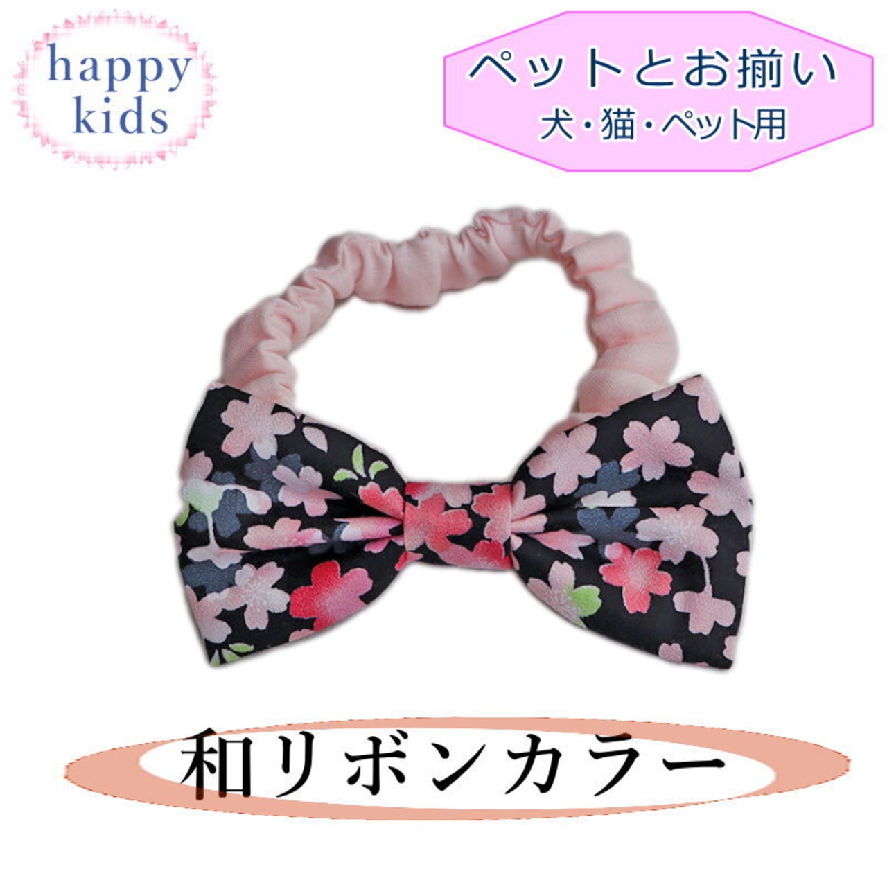 ペットとお揃い 犬用 猫用 和柄リボンカラー 夜桜 黒 雛祭り 首輪 チョーカー 正月 年賀状 ベビー 赤ちゃん キッズ