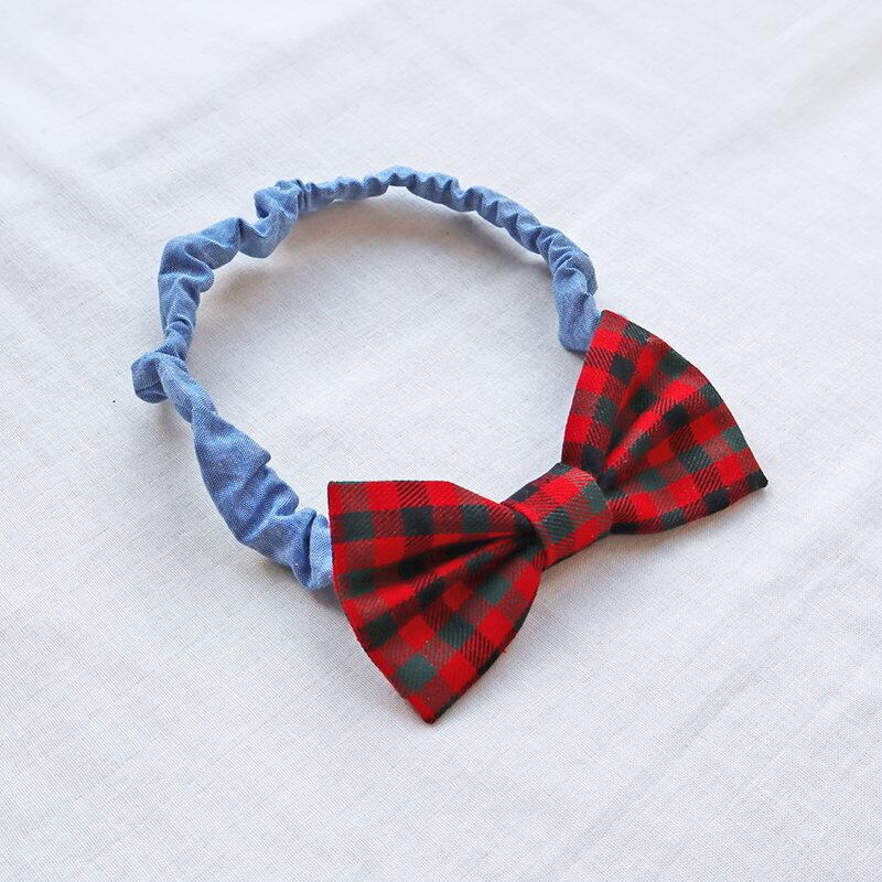 チェック柄ヘッドバンド リボン ヘアアクセ お正月 年賀状 ベビー 赤ちゃん キッズ 子供 犬 猫 ペット お揃い