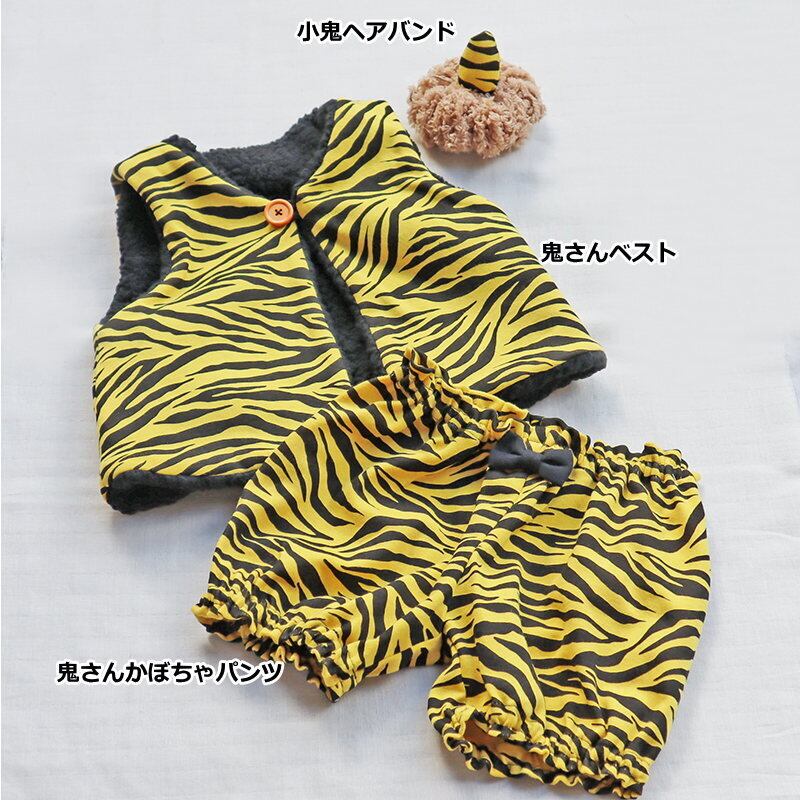 節分 鬼さんなりきりセット ヘアアクセ ヘアバンド ベスト かぼちゃパンツ ベビー 赤ちゃん キッズ 子供 お揃い