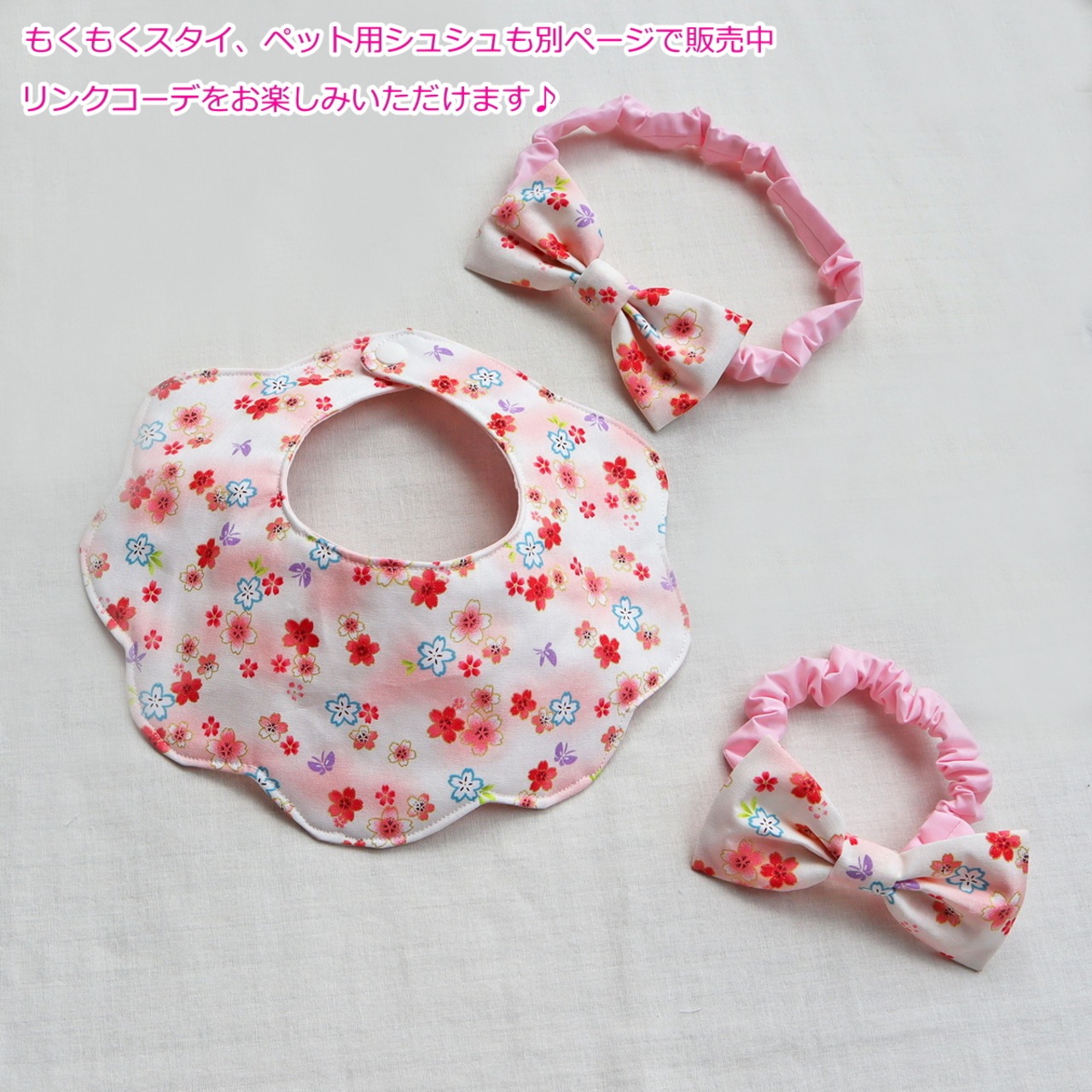 和柄ヘッドバンド 桜 リボン ヘアアクセ 雛祭り ひな祭り ベビー 赤ちゃん キッズ 子供 犬 猫 ペット お揃い