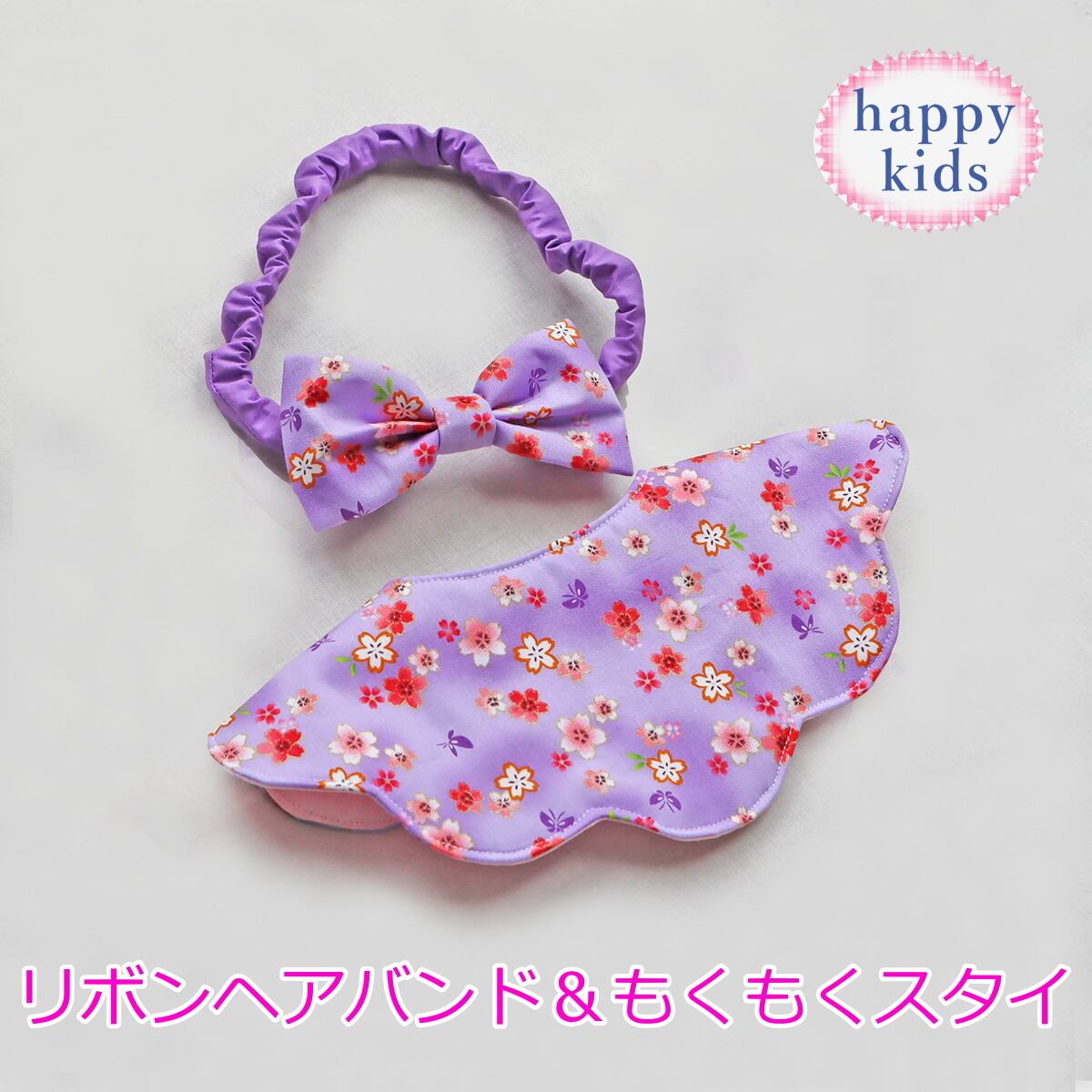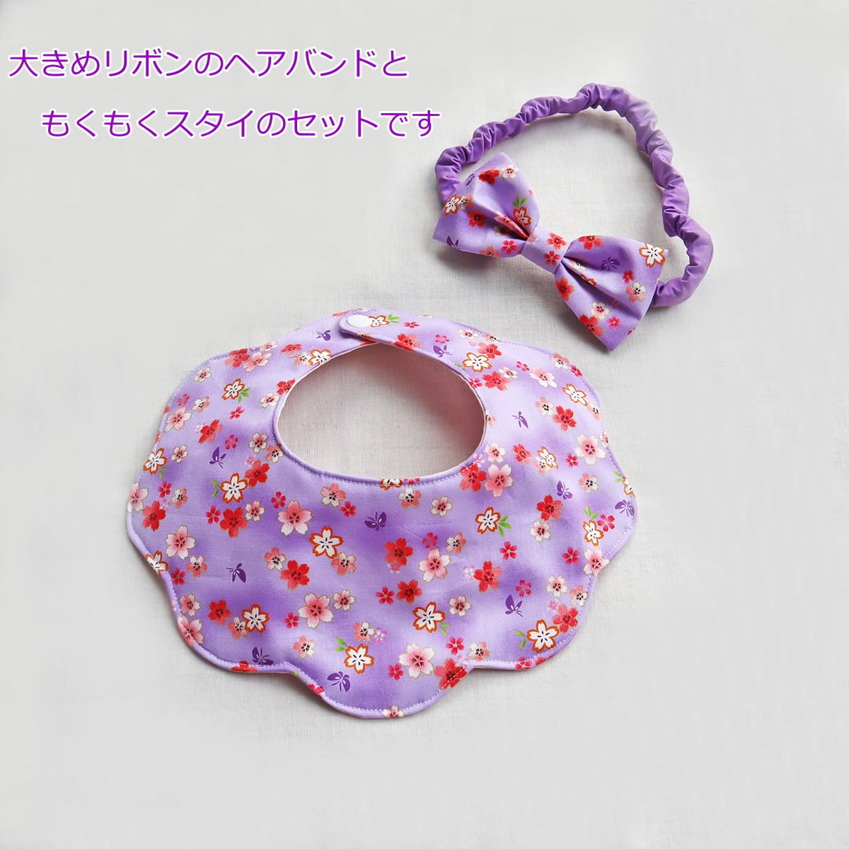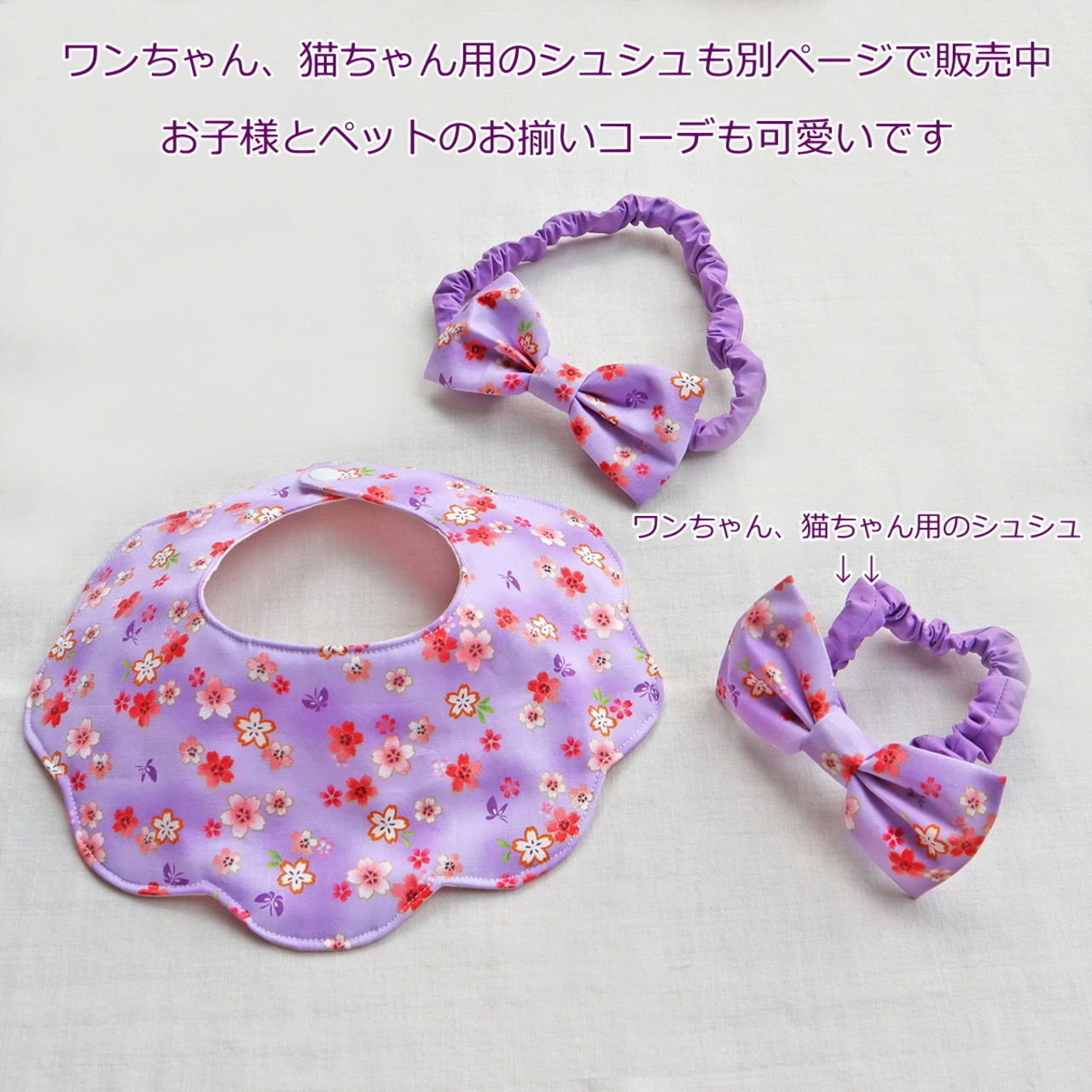 和柄リボン& もくもくスタイ 紫 ひな祭り ヘアアクセ 初節句 ベビー 赤ちゃん キッズ 子供 犬 猫 ペット
