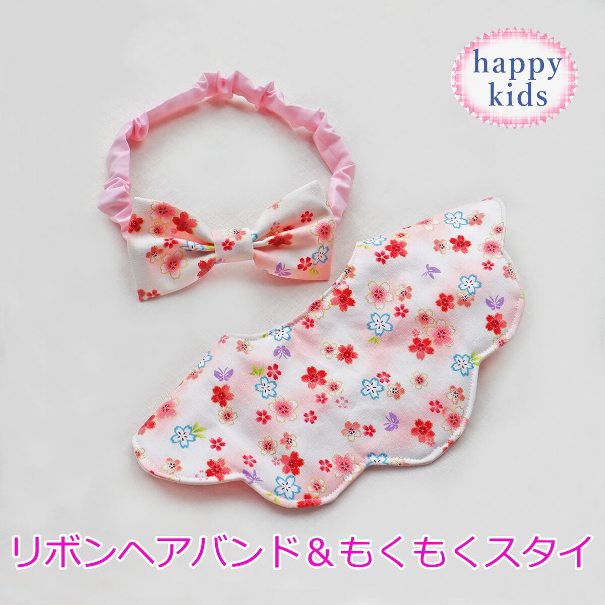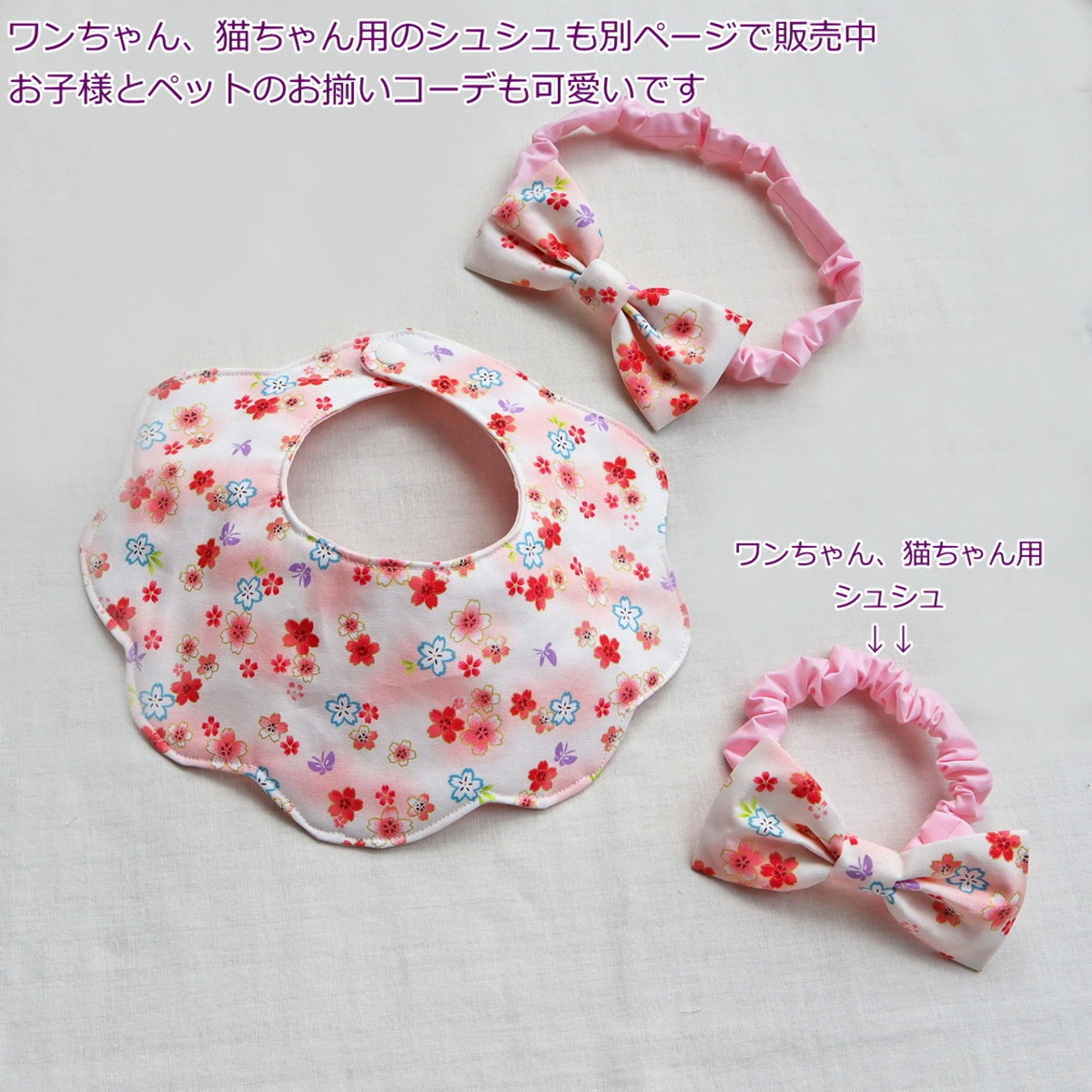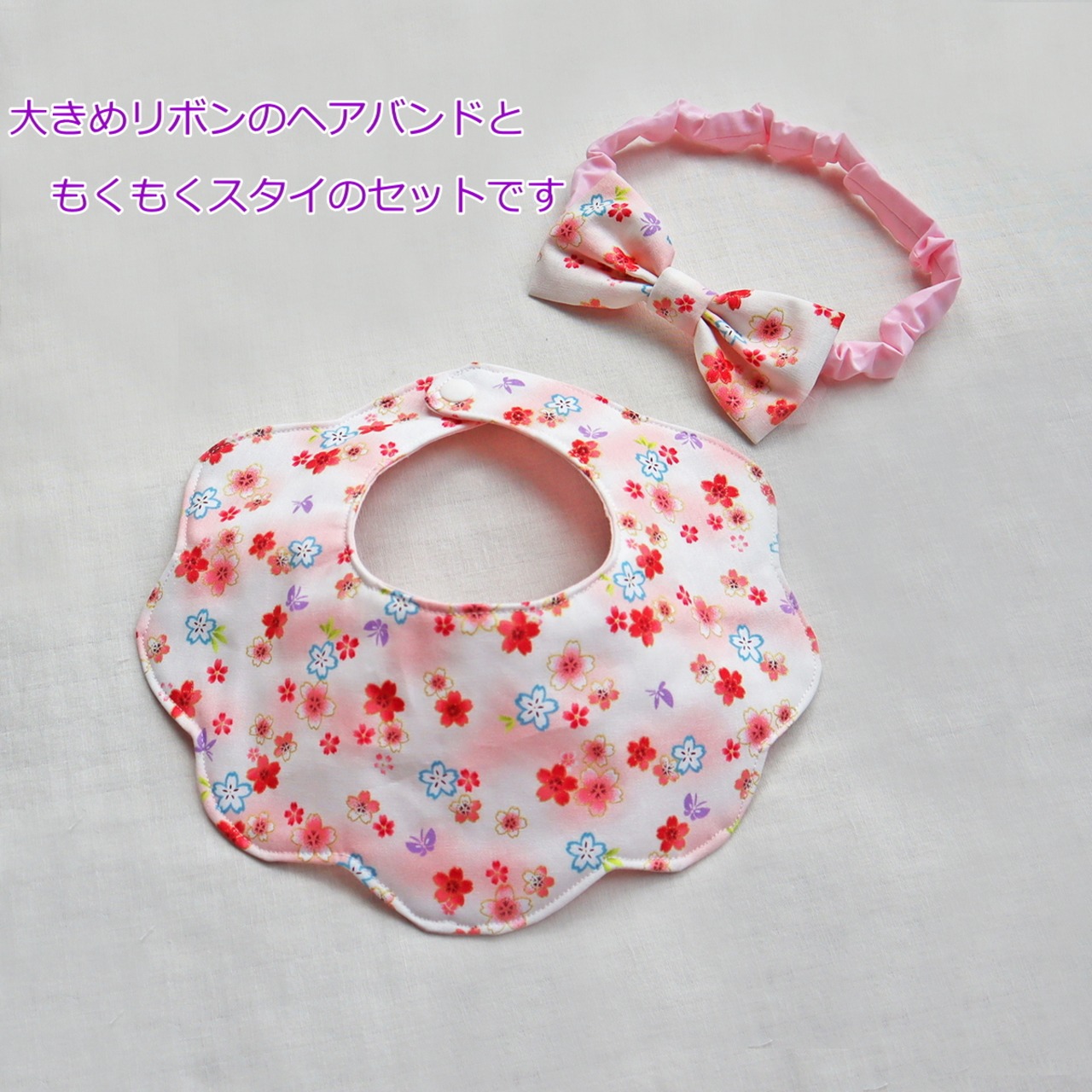 和柄リボン& もくもくスタイ 薄ピンク ひな祭り ヘアアクセ 初節句 ベビー 赤ちゃん キッズ 子供 犬 猫 雛祭り