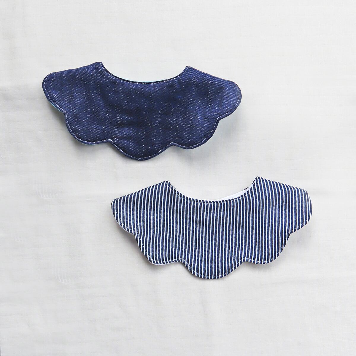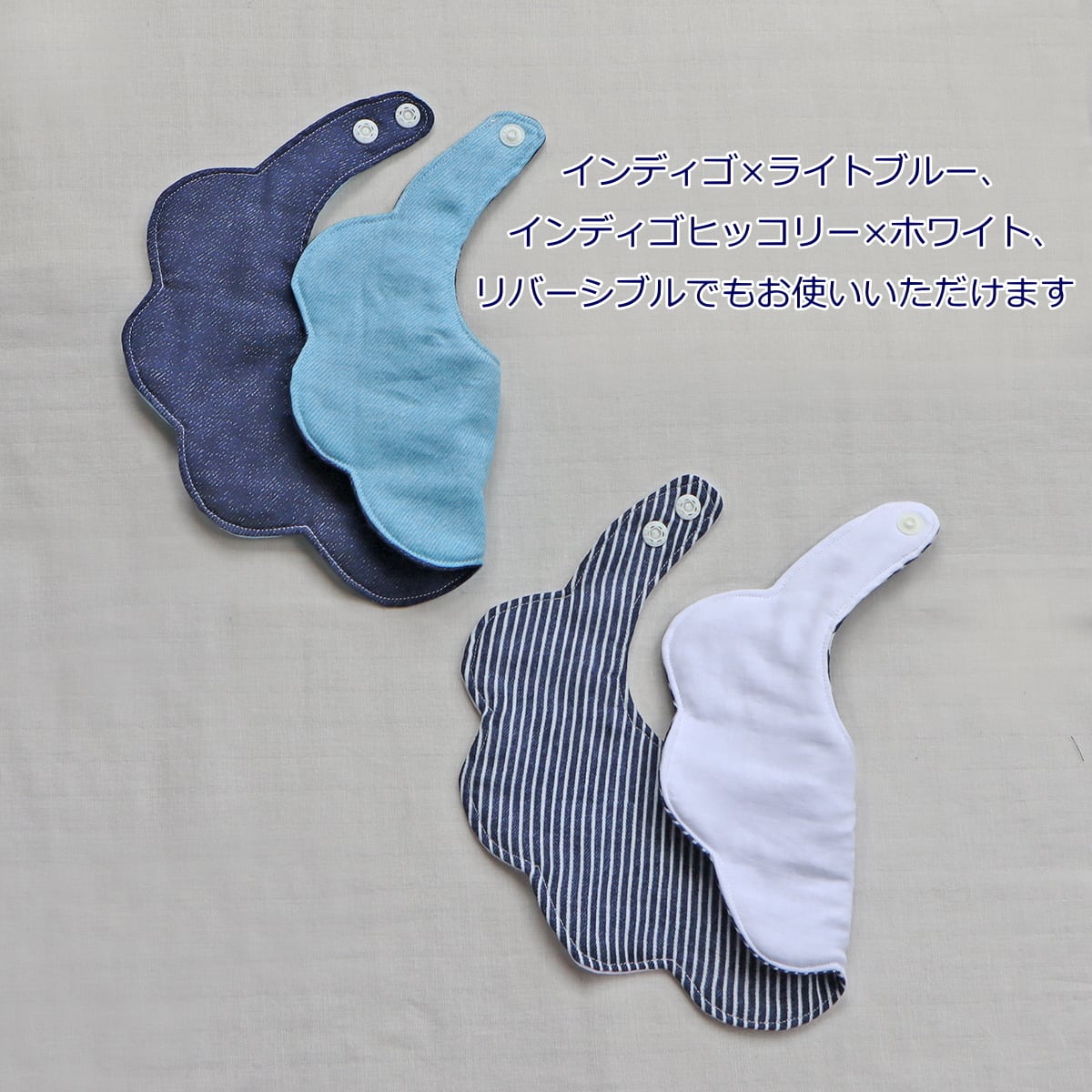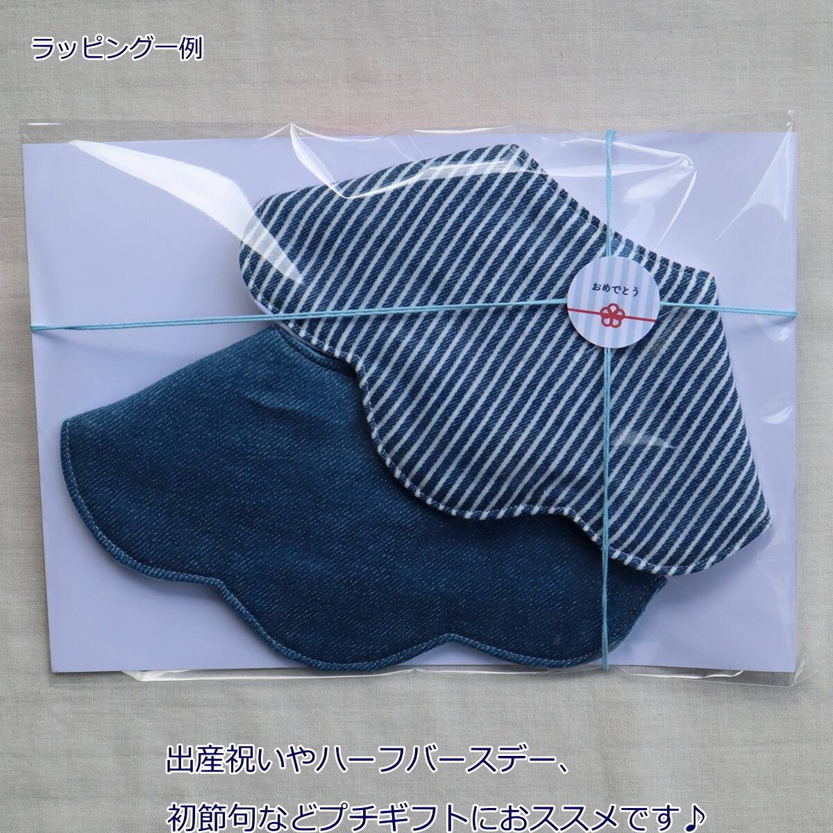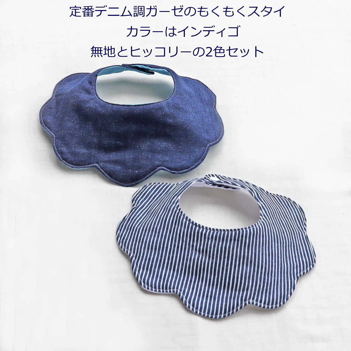 デニムもくもくスタイ 2枚セット インディゴ 出産祝い よだれかけ ヒッコリー 無地 ベビー 赤ちゃん キッズ ギフト
