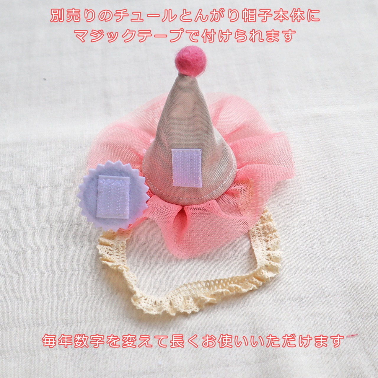 チュールとんがり帽子専用 付け替えられるナンバープレート ヘアバンド パーティーハット 100日祝い マンスリーフォト 誕生日 バースデー ハーフバースデー 犬 猫 ペット