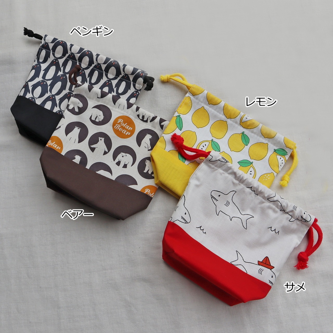コップ入れ 体操服入れ お着換え入れ 巾着袋 入学 入園 熊 檸檬 鮫 リバーシブル ナップサック リュック 裏地付き マチ付き 切り替え 入学祝 入園祝い