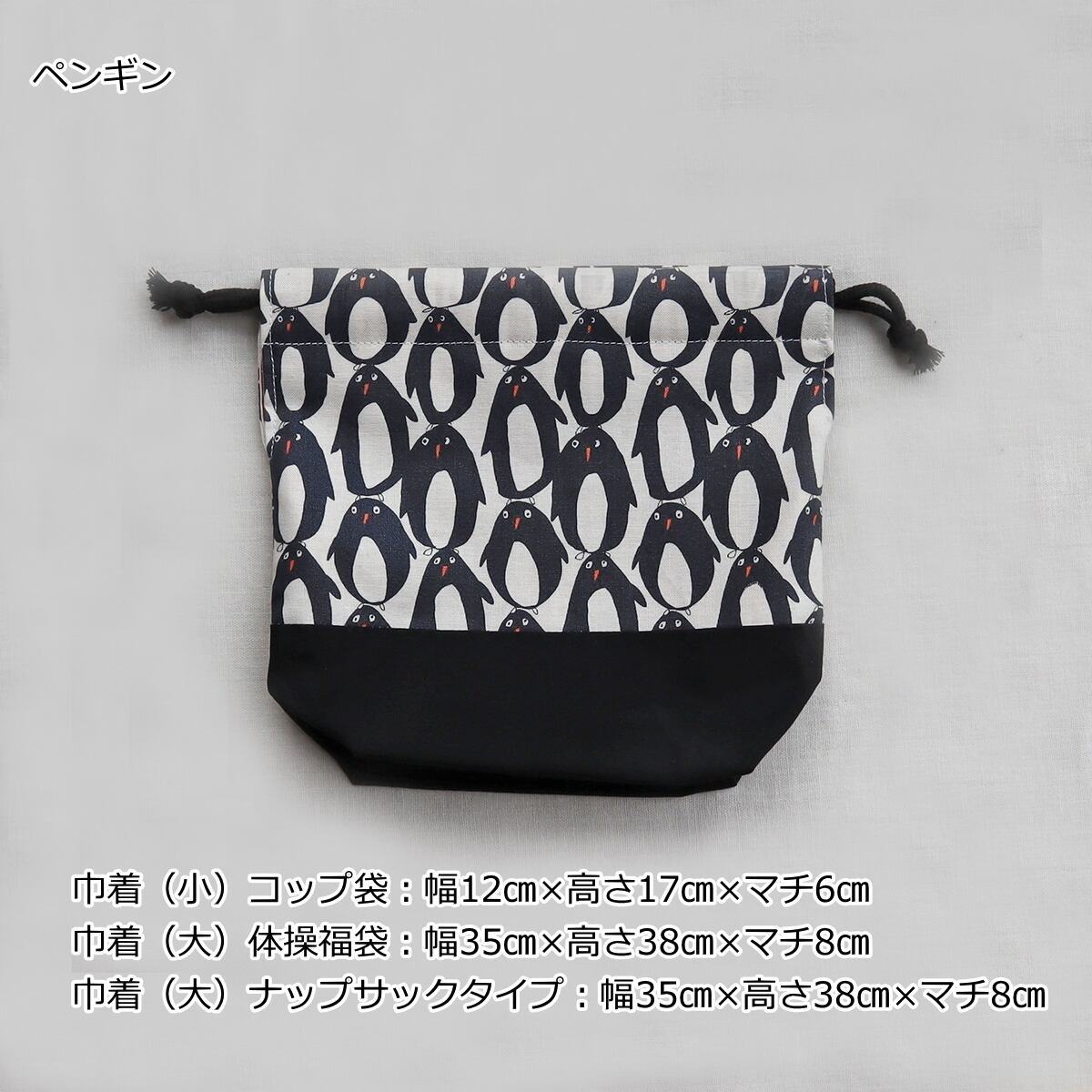 小サイズ(コップ袋)、体操服袋・お着換え袋、ナップサックタイプからお選びいただけます