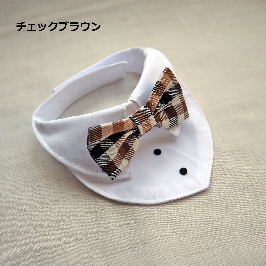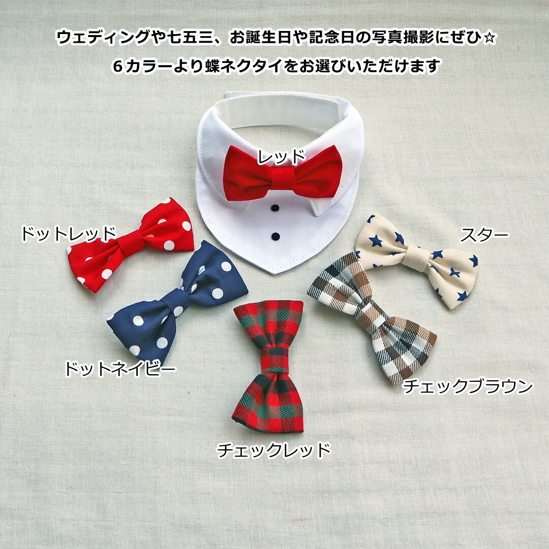 フォーマル感のある襟付きバンダナに6カラーより選べる蝶ネクタイがかっこいいです