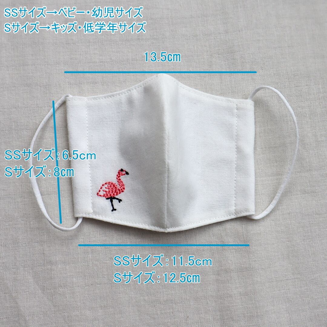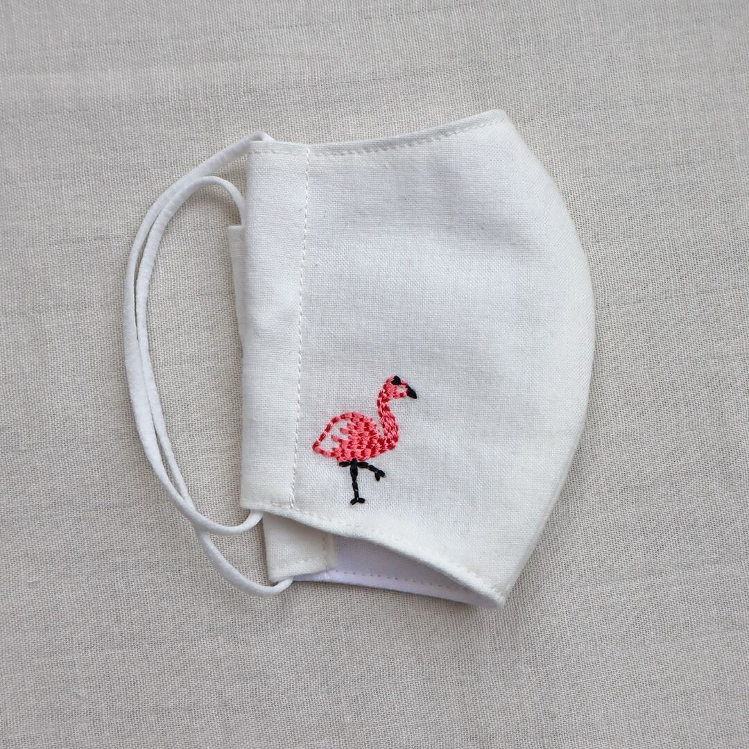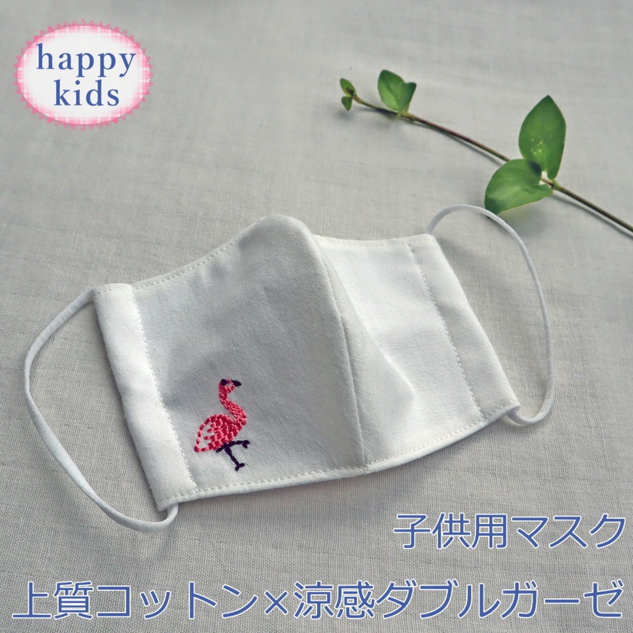 キッズ 子供 幼児 布マスク 洗える 白 ホワイト フラミンゴ 鳥 ピンク 刺繍 女の子 可愛い 立体 涼感 冷感 夏 ひんやり 涼しい ベビー キッズ 赤ちゃん 幼稚園児 保育園児 幼児