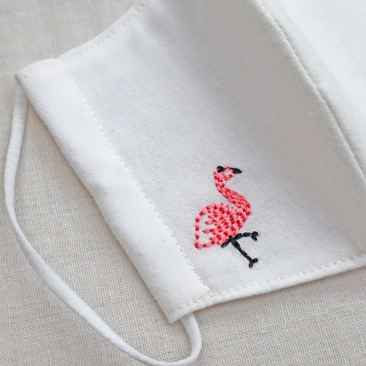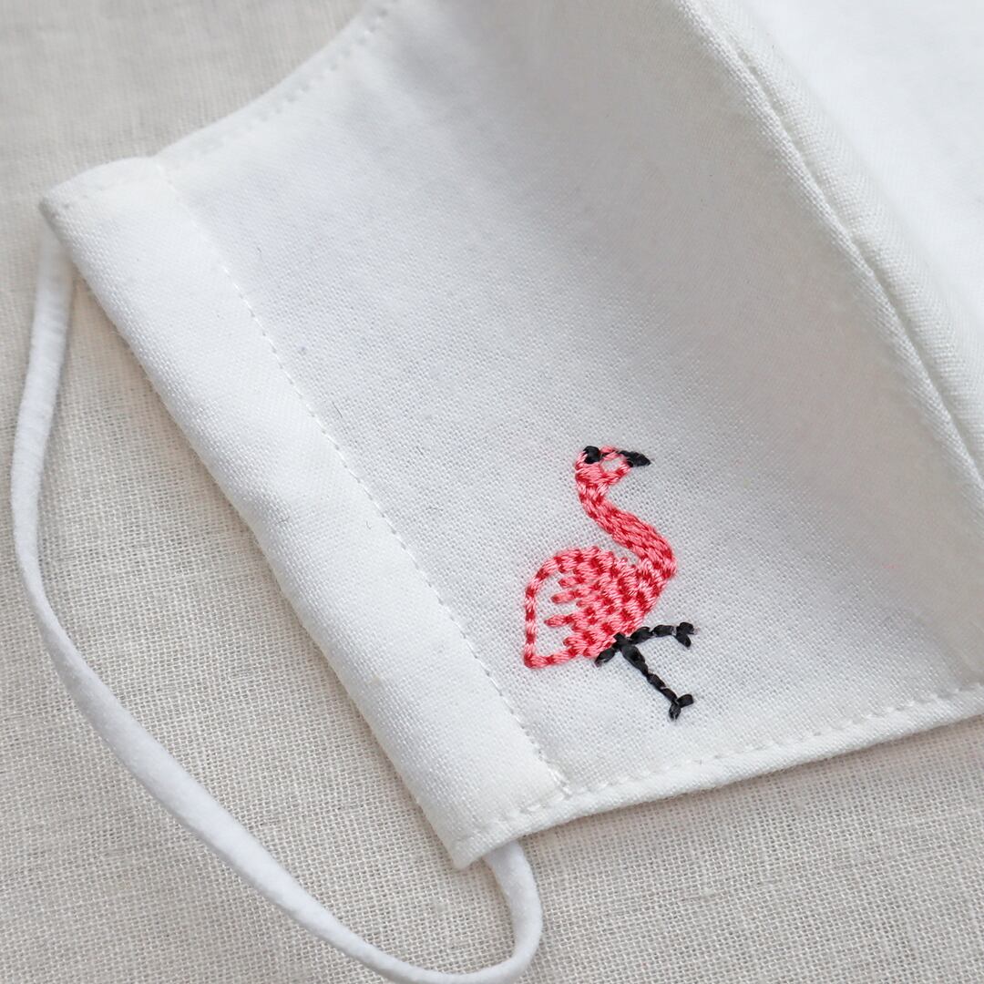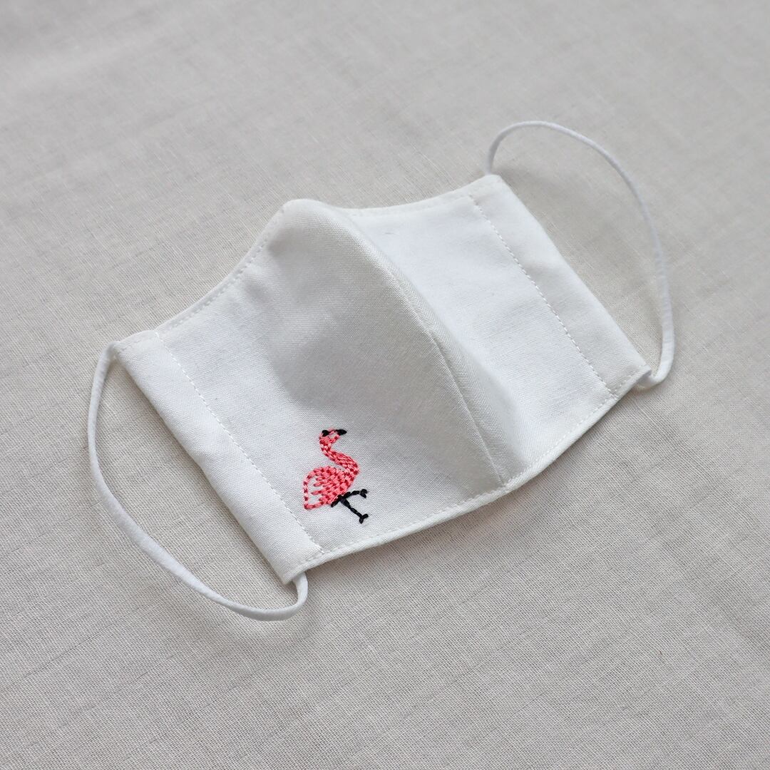 キッズ 子供 幼児 布マスク 洗える 白 ホワイト フラミンゴ 鳥 ピンク 刺繍 女の子 可愛い 立体 涼感 冷感 夏 ひんやり 涼しい ベビー キッズ 赤ちゃん 幼稚園児 保育園児 幼児