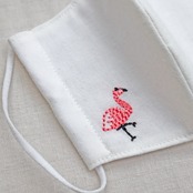 柔らかなホワイト地にワンポイントのフラミンゴの刺繍