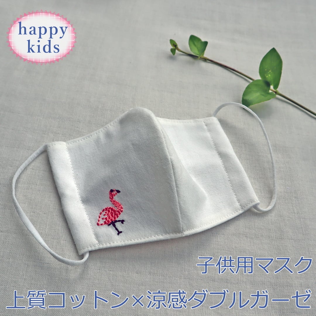 夏 涼感マスク キッズ用 ベビー用 フラミンゴ 刺繍 女の子 冷感 ガーゼ 子供 布マスク 小学校低学年